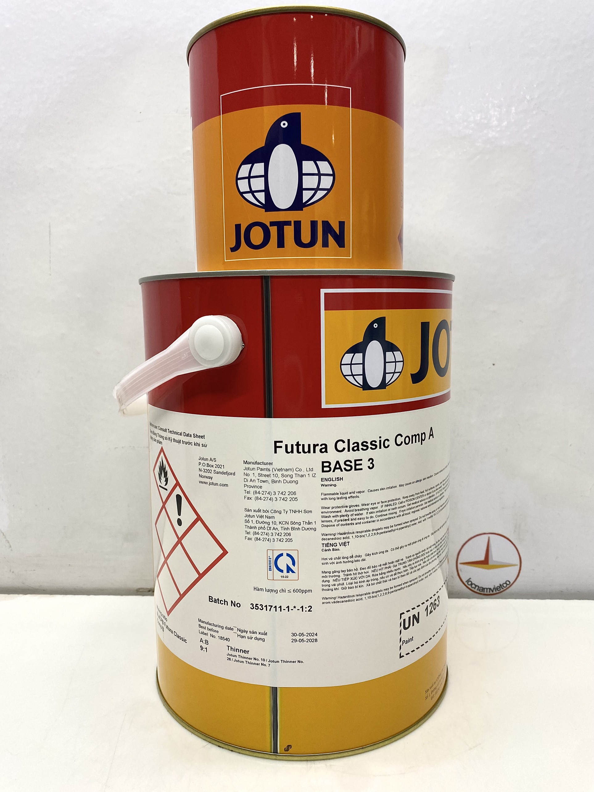 - Thời gian khô sơn Jotun Futura Classic: 60 phút (ở nhiệt độ 23 độ C)