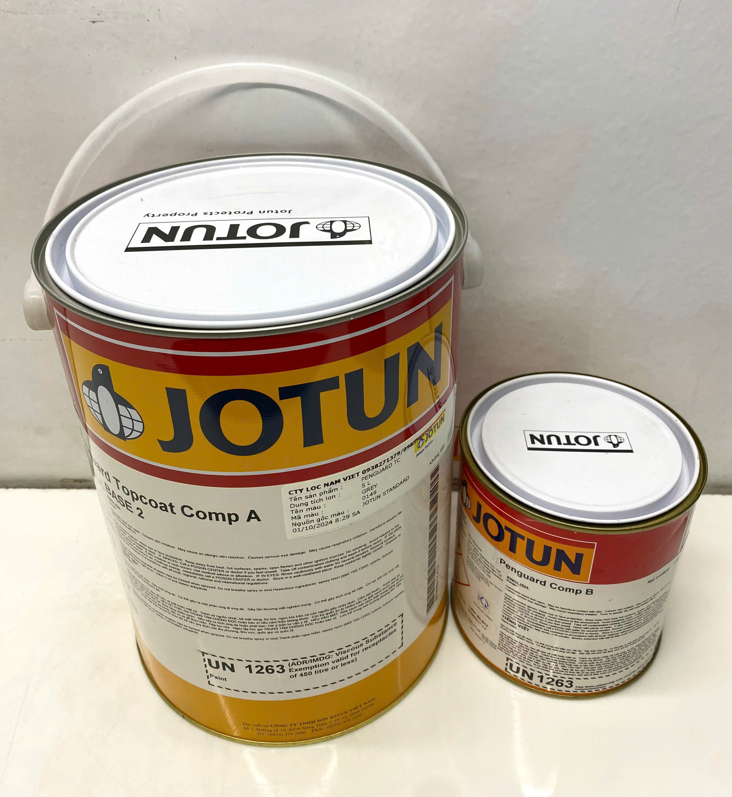 Mua tại TiktokSơn Epoxy Jotun Penguard Topcoat base 2 màu xám Grey 0149_5L/bộ - Sơn Epoxy Jotun Penguard Topcoat là loại sơn 2 thành phần gốc epoxy đóng rắn bằng polyamide. - Sản phẩm này có độ bóng hoàn thiện với khả năng cầm bóng trung bình. Dùng như là lớp phủ cuối trong môi trường khí quyển. - Sơn Jotun Penguard Topcoat thích hợp cho nhiều loại kết cấu công nghiệp, trong hàng hải được đề nghị sử dụng cho mạn khô, boong tàu và cấu trúc thượng tầng.