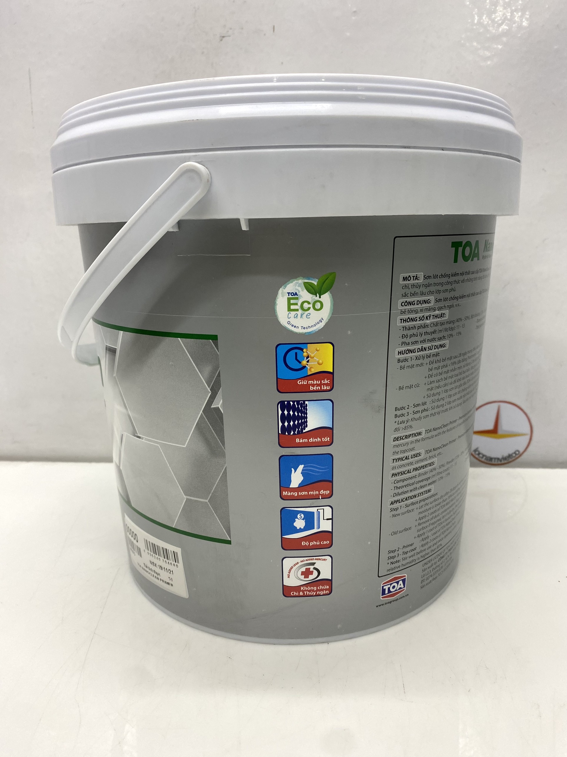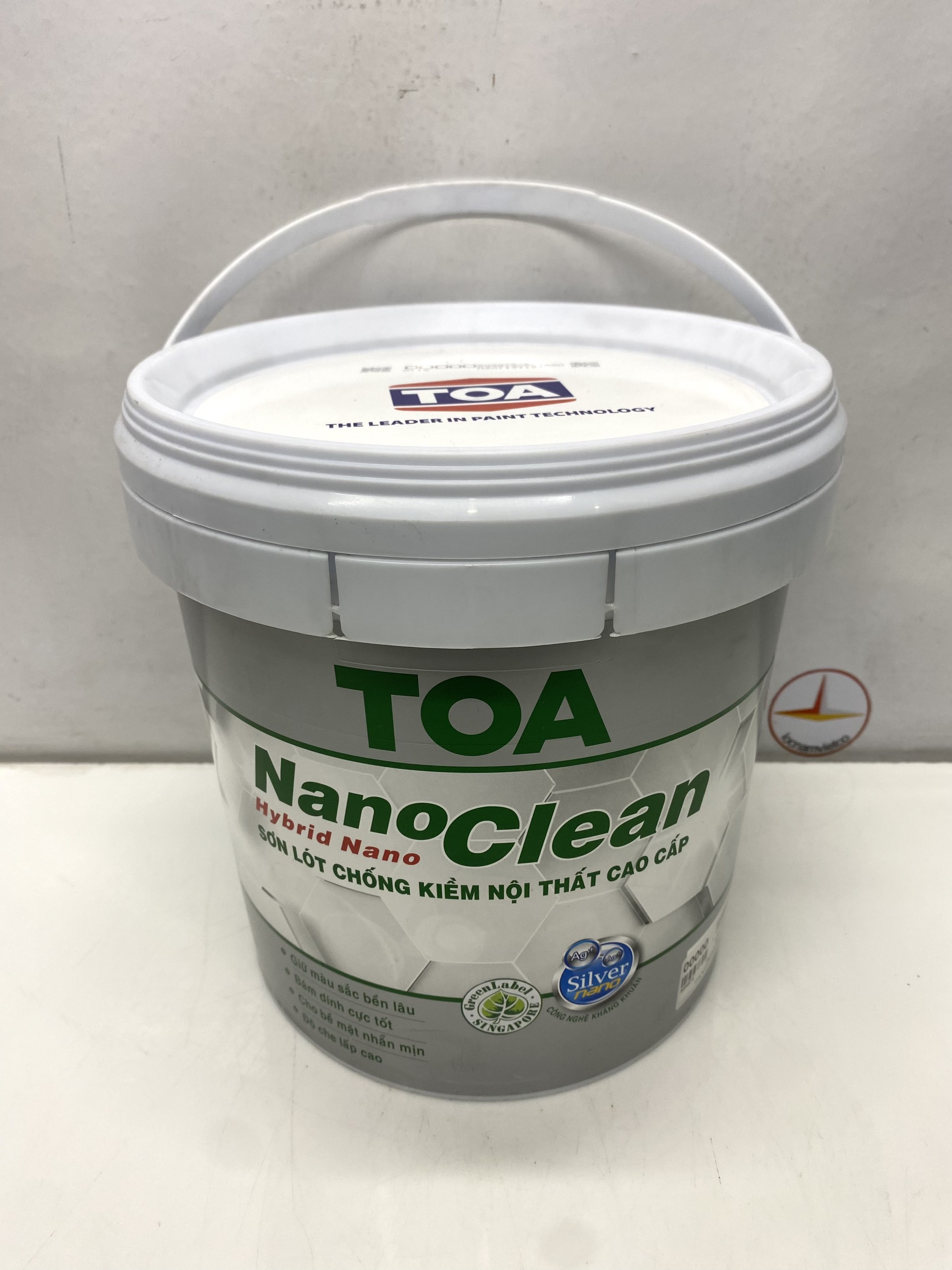 Mua tại TiktokSơn lót chống kiềm nội thất Toa Nanoclean Primer _5L Sơn lót chống kiềm nội thất cao cấp TOA NanoClean Primer là loại sơn lót đặc biệt, được sản xuất từ nhựa styrene acrylic; không sử dụng chì trong công thức, với những tính năng: độ bám dính tuyệt vời, không bong tróc, chống kiềm hóa, tạo độ láng mịn và giữ màu sắc bền lâu cho lớp sơn phủ.