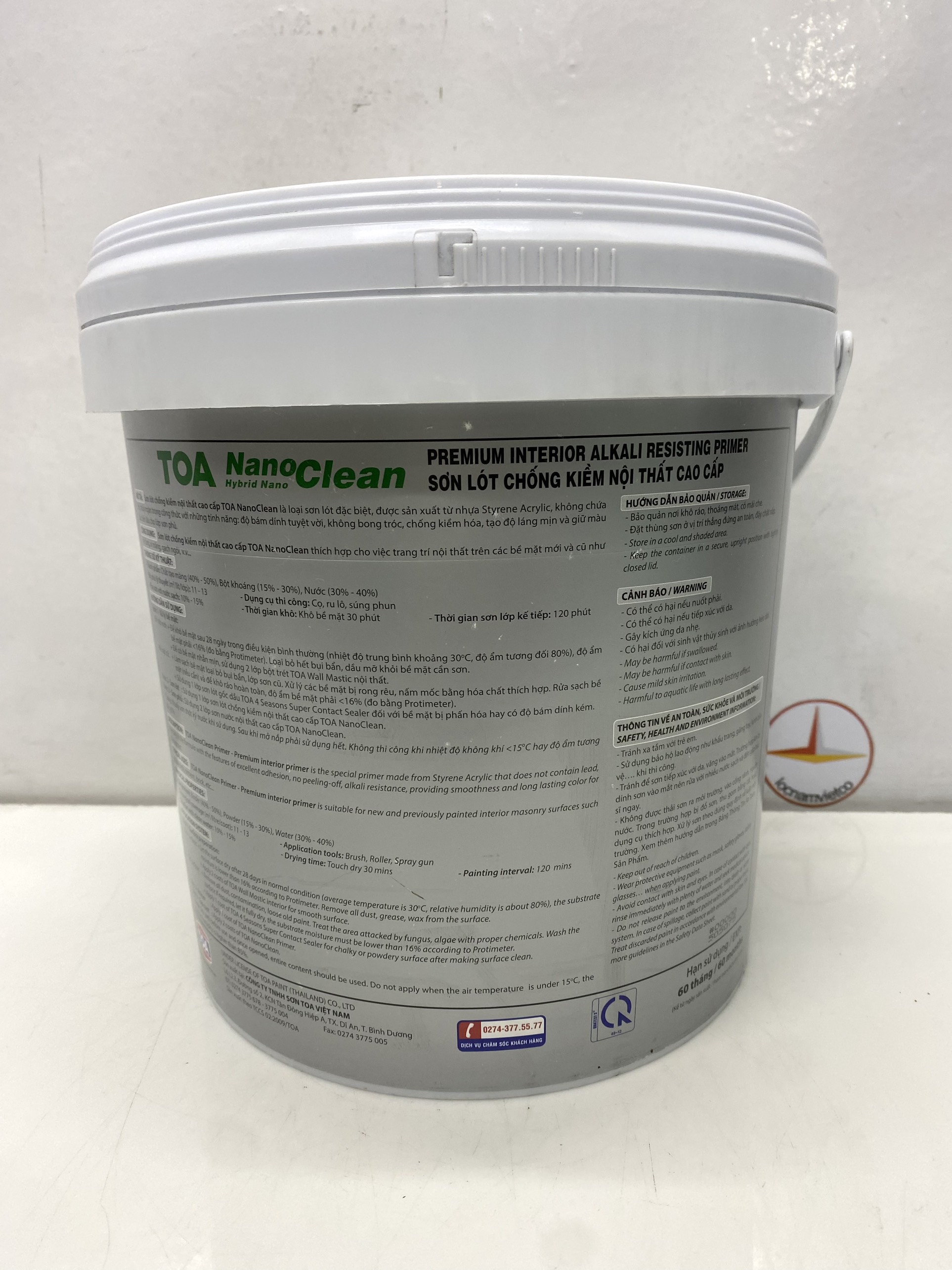 Sơn lót chống kiềm nội thất Toa Nanoclean Primer _5L Sơn lót chống kiềm nội thất cao cấp TOA NanoClean Primer là loại sơn lót đặc biệt, được sản xuất từ nhựa styrene acrylic; không