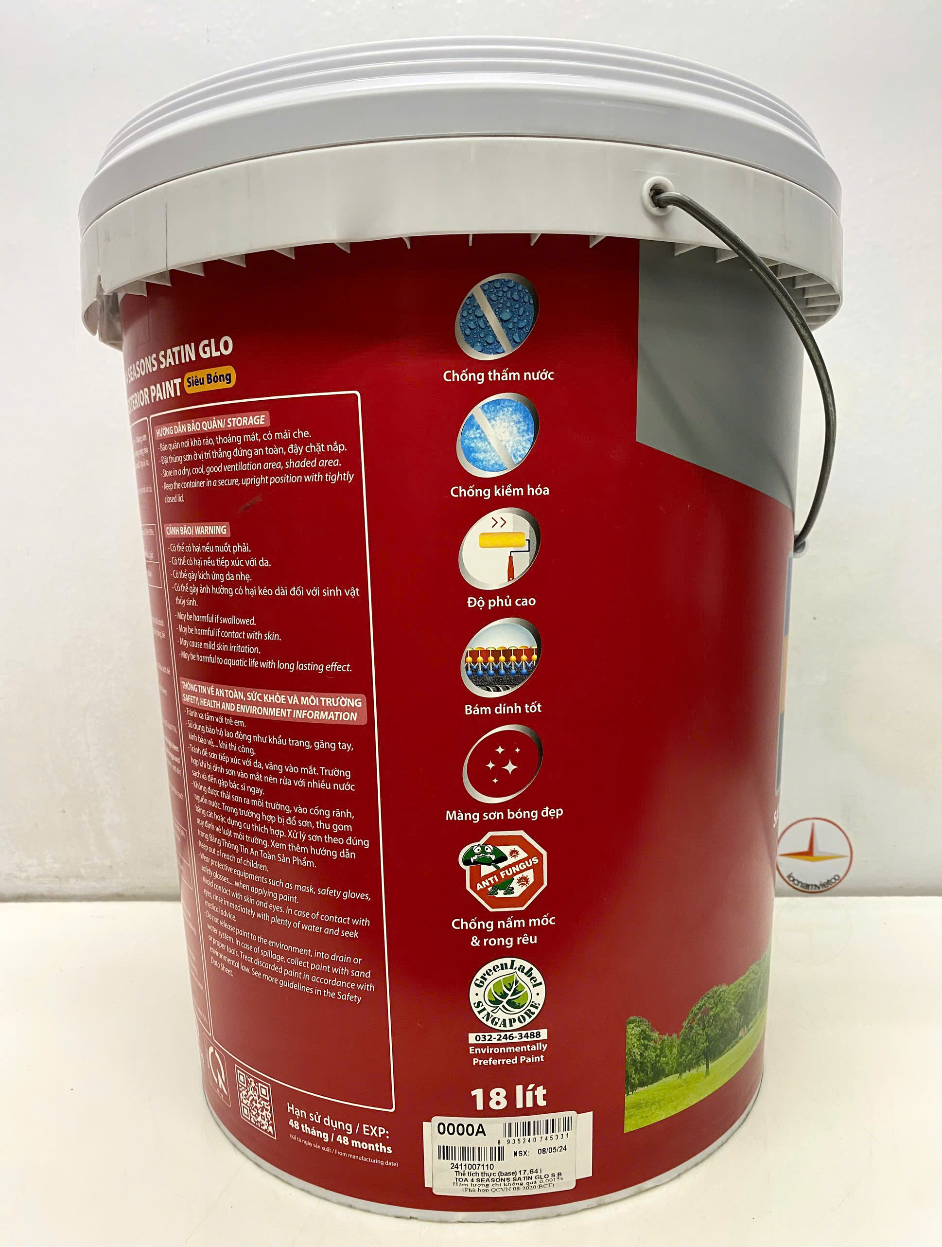 Sơn nước Toa 4 Season Top Silk dễ lau chùi nội thất NHIỀU MÀU _18L Sơn Nước nội thất Toa 4 Season top silk dễ lau chùi được chế tạo từ nhựa nhũ tương, với