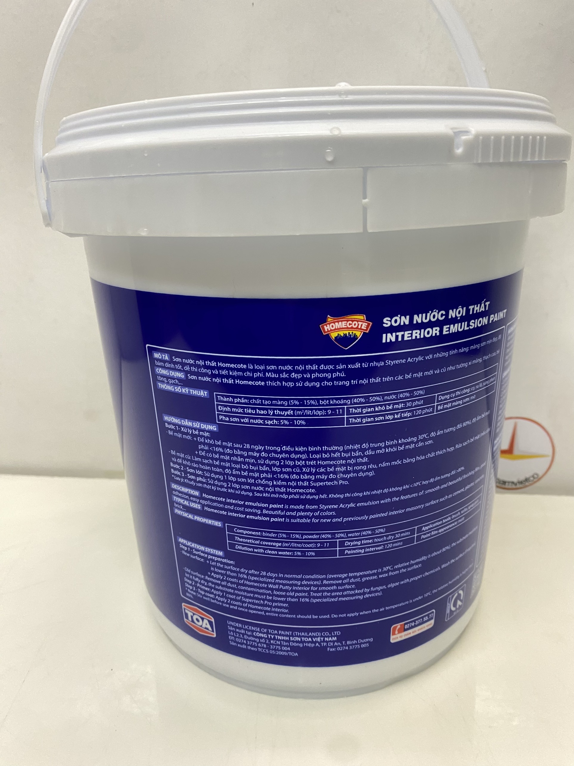 Mua tại TiktokSơn Nước Toa Homecote nội thất màu kem 8792_5L Sơn Nước nội thất Toa Homecote là loại sơn nước được sản xuất từ nhựa Styren Acrylic với những tính năng: màng sơn mịn đẹp, độ bám dính tốt, dễ thi công và tiết kiệm chi phí, không sử dụng chì trong công thức.