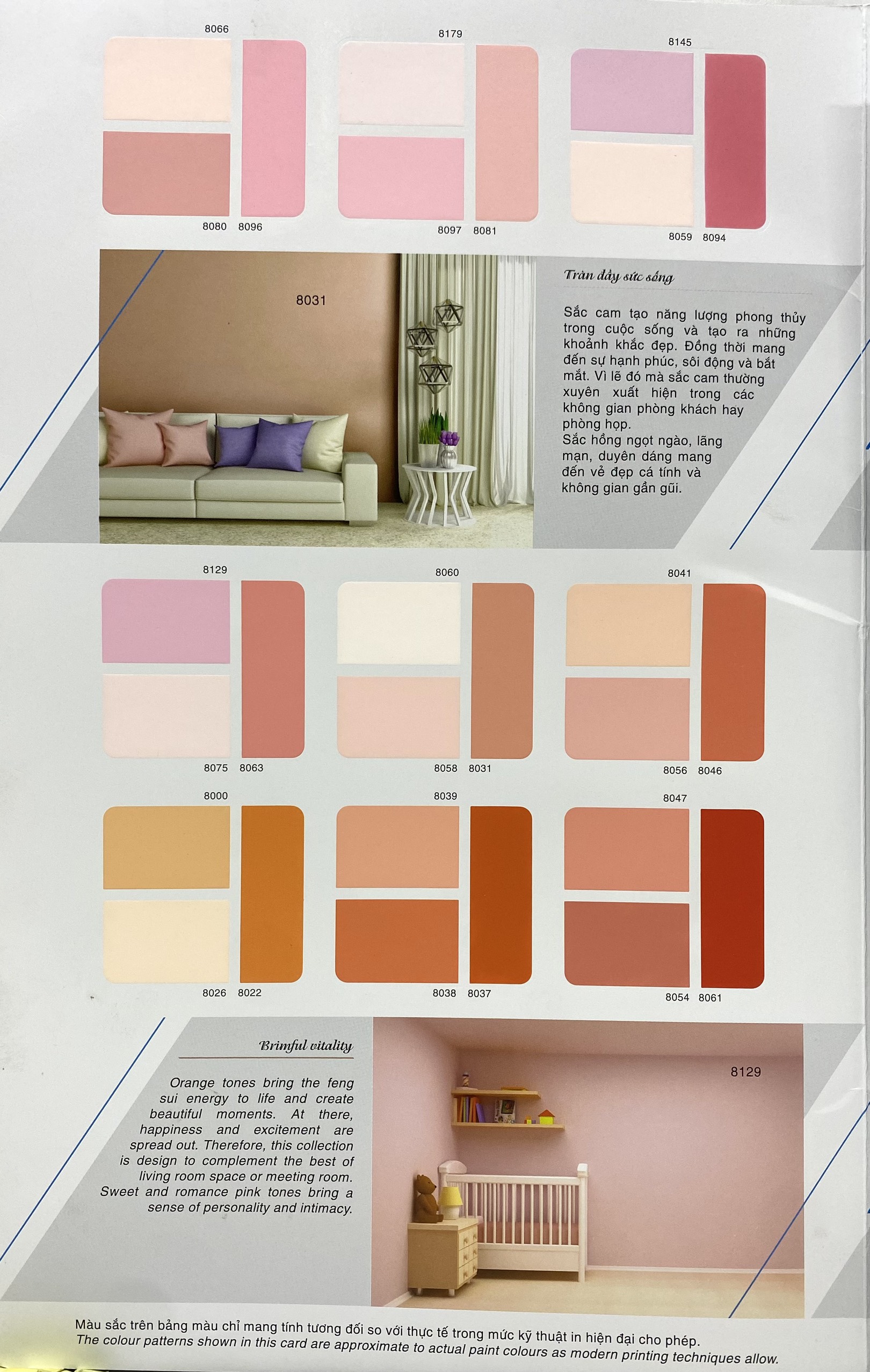 Ngược lại, việc lựa chọn sai màu sơn sẽ gây ra cảm giác bí bách, chật chội, rối mắt và ảnh hưởng không nhỏ đến tâm trạng của các thành viên trong nhà. Phối màu sơn phào chỉ trần nhà đẹp thu hút, ấn tượng cho thấy chủ nhà là người có gu thẩm mỹ rất tinh tế, am hiểu về kiến trúc và mỹ thuật. Còn gì tuyệt vời hơn khi nhận được lời khen ấm áp đến từ các vị khách đến thăm ngôi nhà. Theo kinh nghiệm của shop thì phối màu theo cùng tông màu(xanh đi với xanh đậm hơn, xám đi với xám đậm hơn…) kết hợp với màu trắng sẽ làm ngôi nhà sẽ nổi và đẹp hơn ví dụ: Tường màu xanh 7411 thì màu điểm nhấn mảng lớn hơn (nếu có) là 7409 và màu chỉ sẽ là 7376 kết hợp với màu trắng sẽ làm ngôi nhà nổi bật tinh tế , đẹp sang trọng và hiện đại. Một số màu sơn chỉ phào chỉ được lựa chọn nhiều hiện nay: Hồng 8096, Hồng 8081, 8094, 8063,8031,8046, gạch 8022, 8037, đỏ 806, vàng 7870, 7910,7822, xanh lá mạ 7742, 7703, 7653, xanh ngọc 7592, 7567, 7502, xanh da trời 7434,7376,7407, 7327, 7271, 7294,7358,7263, đen 8253, 8333, Trắng, Nhũ vàng Dòng sơn chỉ trong nhà: Sơn Nước nội thất Toa 4 Season top silk dễ lau chùi được chế tạo từ nhựa nhũ tương, với công nghệ sơn nước cao cấp, chất lượng tốt, độ phủ cao, bề mặt nhẵn mịn, có khả năng chống nấm mốc cao, có màu sắc bền đẹp. Công thức không chứa Chì, Phoóc-môn, APEO... an toàn cho sức khoẻ và môi trường.