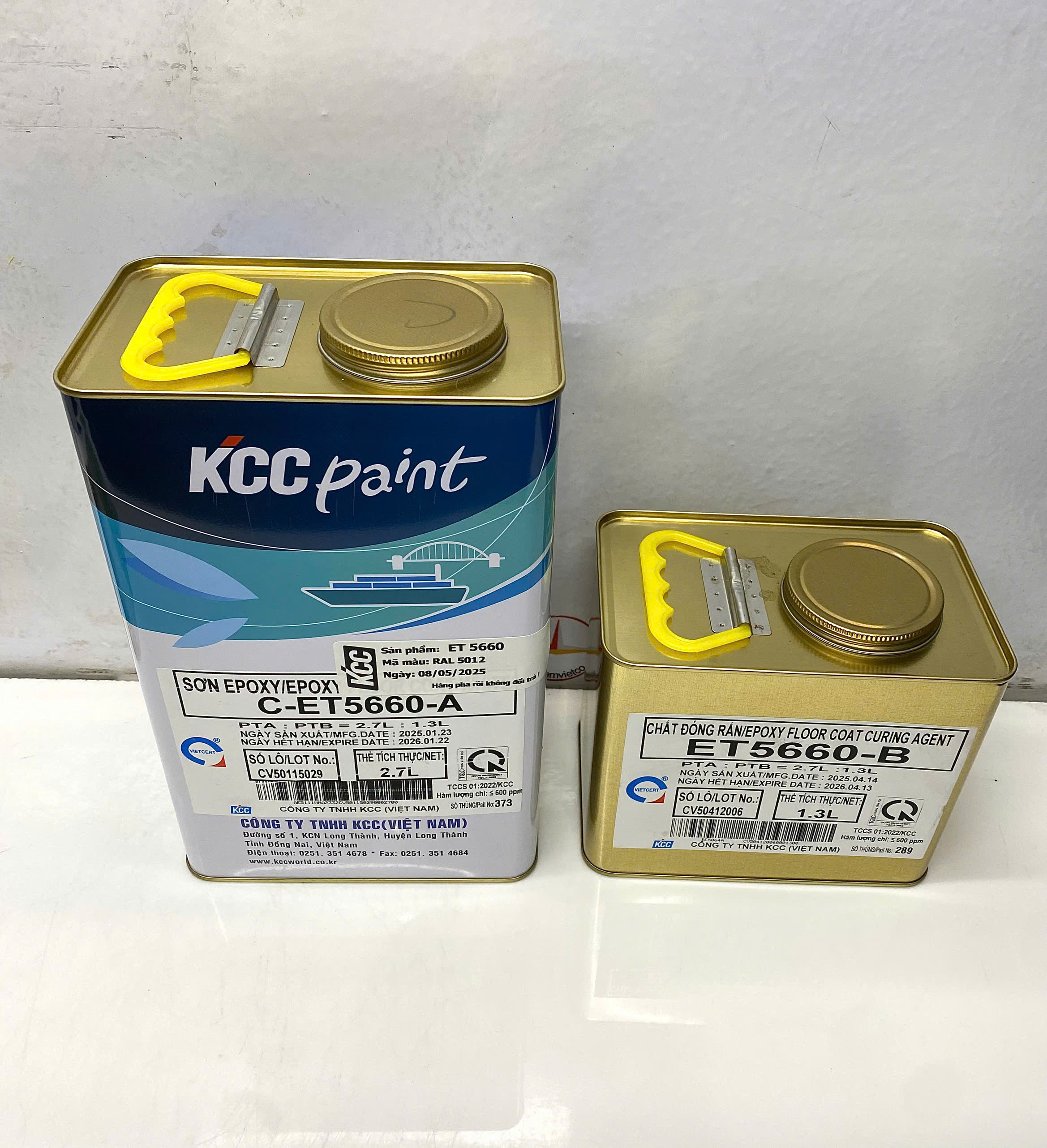 Sơn sàn bê tông epoxy KCC ET5660 Base C màu xanh dương RAL 5012 _ 4L/Bộ