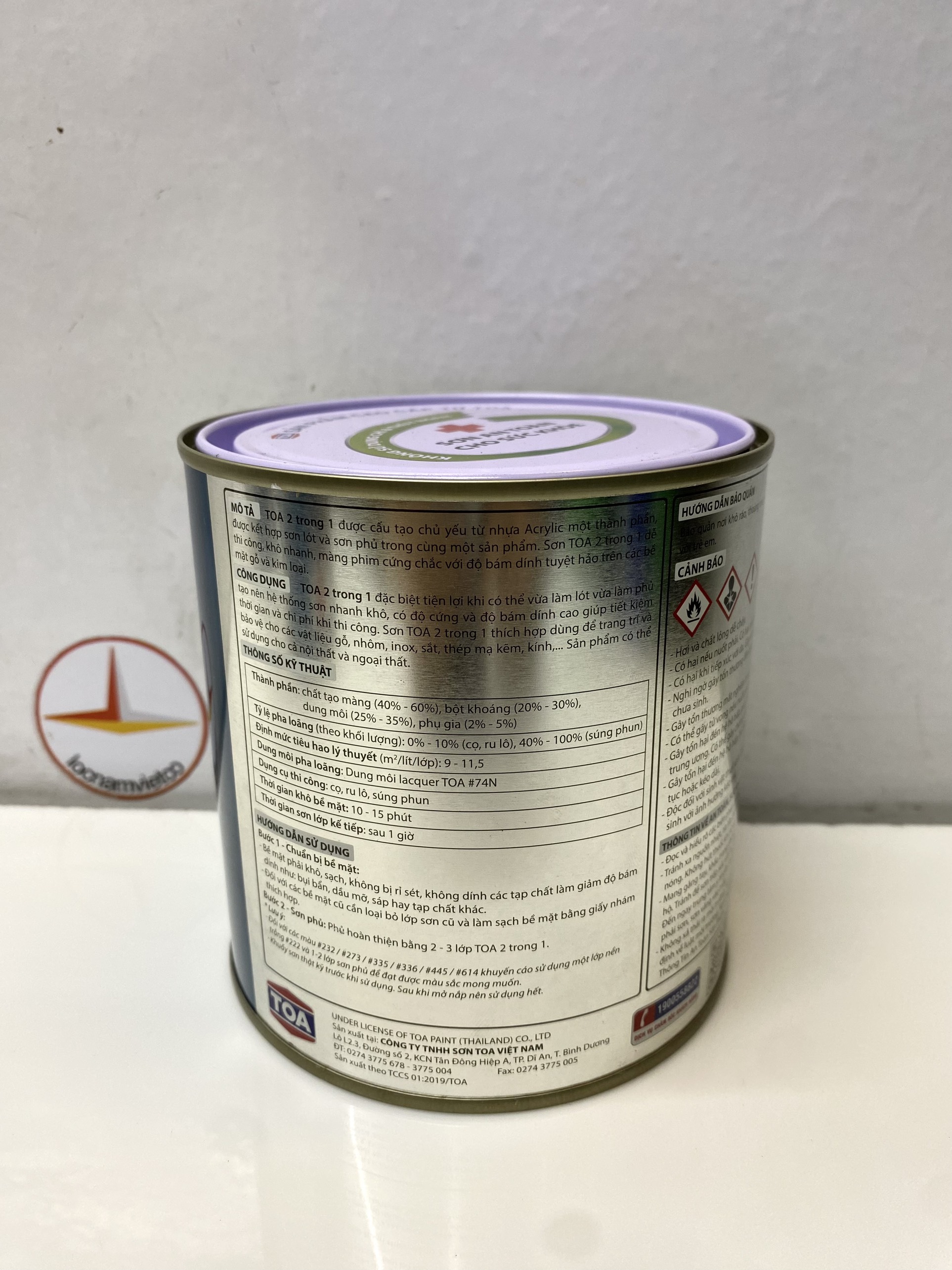 Không sử dụng crom, chì . MỤC ĐÍCH SỬ DỤNG: Sơn TOA 2 trong 1 thích hợp dùng để trang trí và bảo vệ cho các vật liệu thép mạ kẽm, nhôm, inox, sắt, gỗ… Sử dụng được cho cả trong nhà và ngoài trời. THÔNG SỐ KỸ THUẬT Màu sắc: trắng 111, xanh 620, xanh 601, xanh 631, xanh 618, xanh lá 614, xám 125, 120, xanh 642, xanh 671, bạc 000, xám 192, trắng mờ 222, xám xingfa XF911, XF910, XF350, xám 189, xám 191, đen 999, đen mờ 888, đỏ 335, đỏ 336, đỏ nâu 720, cánh dán 721, kem 112, kem 115, vàng 445, 273 cam 232. PHƯƠNG PHÁP THI CÔNG Dụng cụ:cọ, ru lô, máy phun sơn HƯỚNG DẪN THI CÔNG Bước 1 - Chuẩn bị bề mặt: Bề mặt phải khô, sạch, không bị rỉ sét, không dính các tạp chất làm giảm độ bám dính như: bụi bẩn. dầu mỡ, sáp hay tạp chất khác Đối với các bề mặt cũ cần loại bỏ lớp sơn cũ và làm sạch bề mặt bằng giấy nhám thích hợp. Bước 2 - Sơn phủ: Phủ hoàn thiện bằng 2 – 3 lớp sơn TOA2 trong 1 *Lưu ý: Khuấy sơn thật kỹ trước khi sử dụng. Sau khi mở nắp nên sử dụng hết. Nhận giao hàng: Vũng Tàu, Bình Dương, Bình Phước, Long An, Đồng Nai, TP.HCM gửi hàng đi Toàn Quốc giá rẻ.