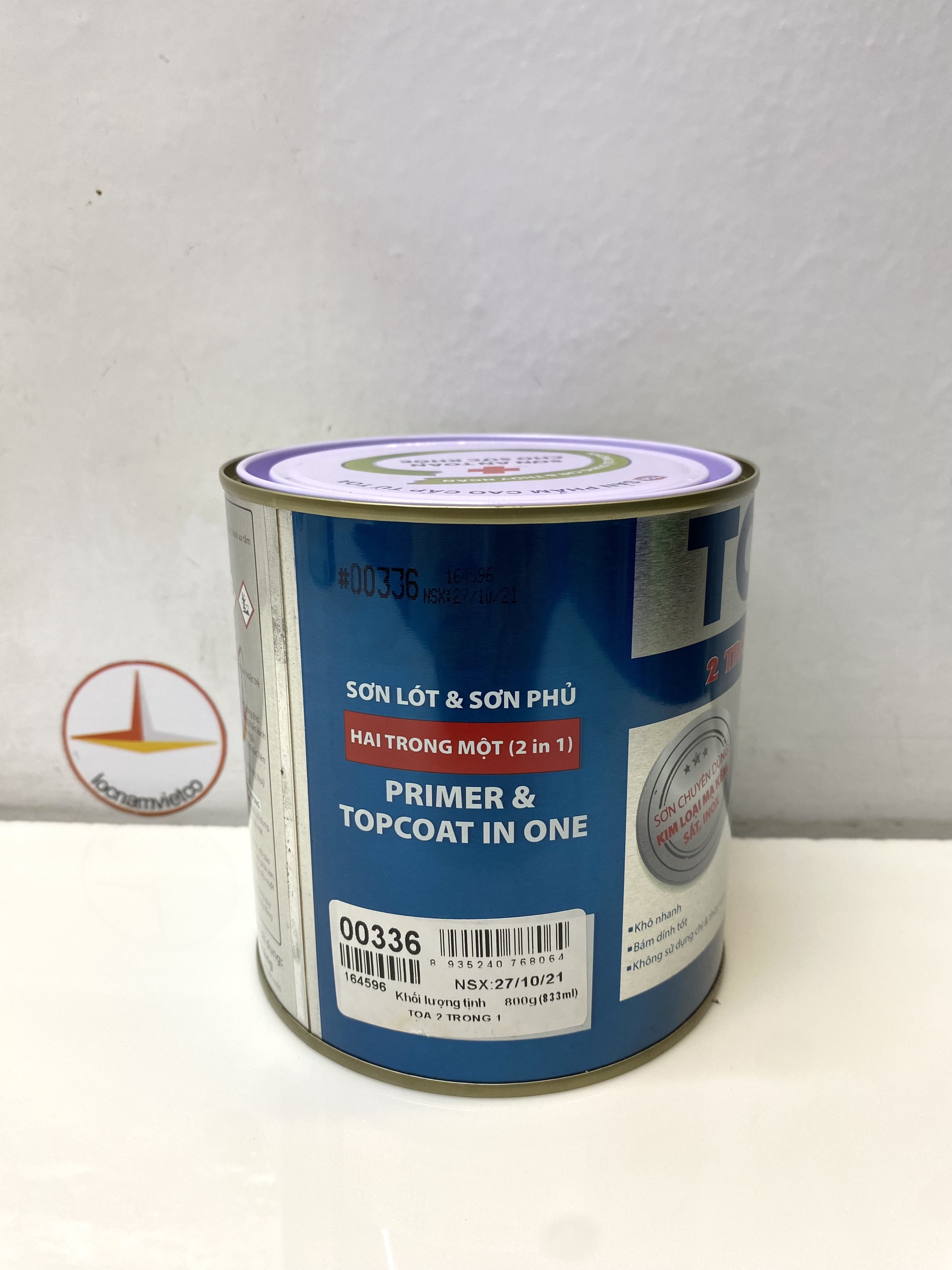 Không sử dụng crom, chì . THÔNG SỐ KỸ THUẬT Màu sắc: trắng 111, xanh 620, xanh 601, xanh 631, xanh 618, xanh lá 614, xám 125, 120, xanh 642, xanh 671, bạc 000, xám 192, trắng mờ 222, xám xingfa XF911, XF910, XF350, xám 189, xám 191, đen 999, đen mờ 888, đỏ 335, đỏ 336, đỏ nâu 720, cánh gián 721, kem 112, kem 115, vàng 445, 273 cam 232. Thành phần:chất tạo màng (40% - 60%), bột khoáng (20% - 30%), dung môi (25% - 35%), phụ gia (2% - 5%) Thời gian khô: Khô bề mặt:10 – 15 phút Sơn lớp kế tiếp:sau 1 giờ Định mức tiêu hao lý thuyết:8 – 10 (m2/kg/lớp) Đóng gói: 0.8 Kg; 3Kg PHƯƠNG PHÁP THI CÔNG Dụng cụ: cọ, ru lô, máy phun sơn Pha loãng: Dung môi TOA Thinner #74N hoặc xăng nhật Tỷ lệ pha loãng:tùy thuộc vào điều kiện thi công Quét cọ: 0% - 10% theo khối lượng HƯỚNG DẪN THI CÔNG Bước 1 - Chuẩn bị bề mặt: Bề mặt phải khô, sạch, không bị rỉ sét, không dính các tạp chất làm giảm độ bám dính như: bụi bẩn. dầu mỡ, sáp hay tạp chất khác Đối với các bề mặt cũ cần loại bỏ lớp sơn cũ và làm sạch bề mặt bằng giấy nhám thích hợp. Bước 2 - Sơn phủ: Phủ hoàn thiện bằng 2 – 3 lớp sơn TOA2 trong 1 *Lưu ý: Khuấy sơn thật kỹ trước khi sử dụng. Sau khi mở nắp nên sử dụng hết. Nhận giao hàng: Vũng Tàu, Bình Dương, Bình Phước, Long An, Đồng Nai, TP.HCM gửi hàng đi Toàn Quốc giá rẻ.