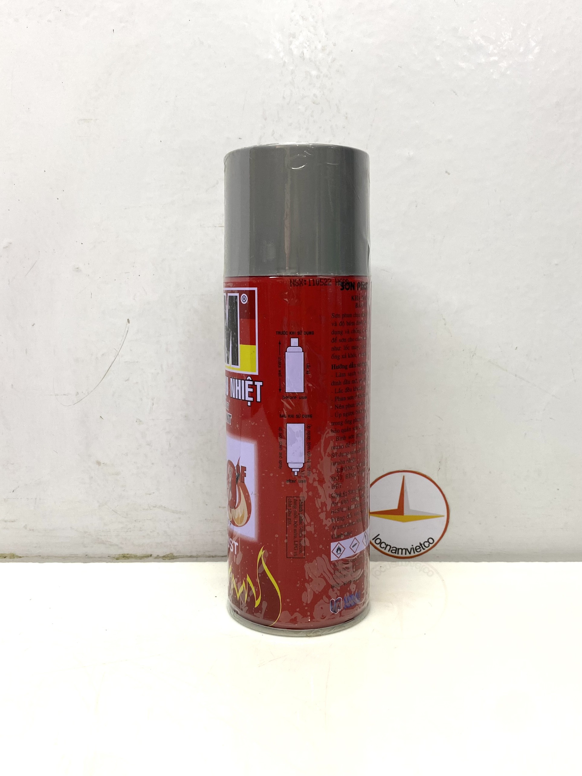 - KHÔNG QUĂNG, NÉM, KHOAN, ĐẬP HOẶC ĐỐT BÌNH SƠN NGAY CẢ KHI SỬ DỤNG HẾT. Chú ý: Sơn phun chịu nhiệt ATM chỉ khô hoàn toàn và đạt khả năng chịu nhiệt tốt nhất (12000F - khoảng 6450C) khi được sấy ở 2500C trong vòng 1 giờ. Riêng đối với sơn phun chịu nhiệt ATM màu H680 - Aluminium, khả năng chịu nhiệt tối đa khoảng 5000C. Thành phần: Nhựa silicon, dung môi, bột màu, LPG và một số thành phần khác. HSD: 60 tháng kể từ ngày sản xuất.