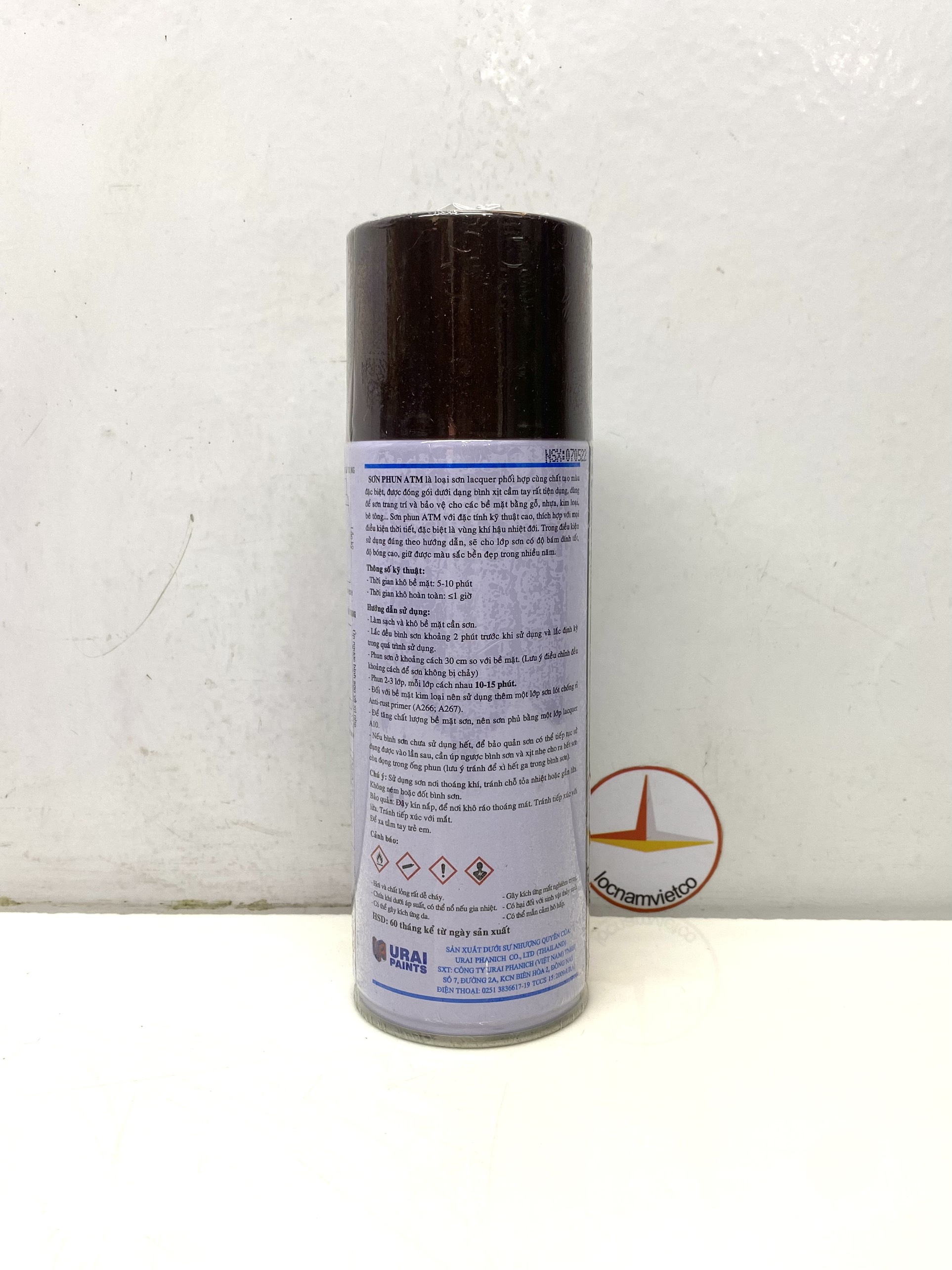 - Nếu bình sơn chưa sử dụng hết, để bảo quản sơn có thể tiếp tục sử dụng vào lần sau, cần úp ngược bình và xịt nhẹ cho ra hết sơn còn đọng trong ống phun (lưu ý tránh để xì hết gas trong bình sơn) Chú ý:Sử dụng sơn nơi thoáng khí, tránh chỗ tỏa nhiệt hoặc gần lửa. Bảo quản sơn nơi có nhiệt độ dưới 40 độ C. Không ném hoặc đốt bình sơn. Bảo quản: Đậy kín nắp, để nơi khô ráo thoáng mát. Để xa tầm tay trẻ em và tránh tiếp xúc với mắt. HSD: 60 tháng kể từ ngày sản xuất. Sản phẩm được phân phối bởi: Công ty TNHH Lộc Nam Việt 1933 QL51, Phước Tân, Biên Hòa, Đồng Nai 0948 79 5588