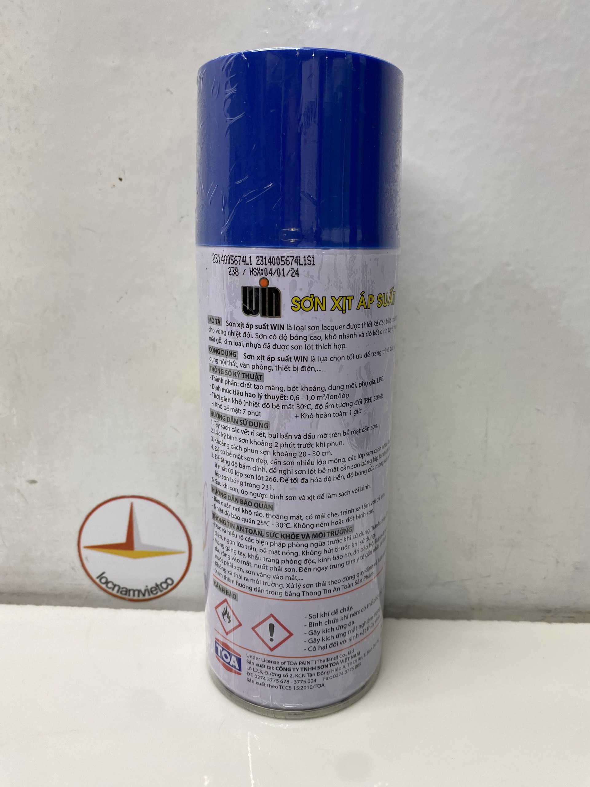 Mua tại TiktokSƠN XỊT WIN MÀU XANH 238 400ML Sơn xịt WIN là loại sơn Lacquer với công thức đặc biệt thích hợp sử dụng cho vùng nhiệt đới. Sơn có độ bóng cao, khô nhanh và độ kết dính tuyệt hảo. Công dụng: Sơn xịt WIN là sự lựa chọn tối ưu để trang trí và bảo vệ cho các vật dụng nội thất, văn phòng, thiết bị điệ Thành phần: Chất tạo màng ; Bột màu ; Dung môi , Phụ Độ phủ lý thuyết:0.6 - 1 m²/lon/lớp (tùy thuộc vào màu) Đóng gói: 400ml/chai; 12 chai/thùng Thời gian khô :