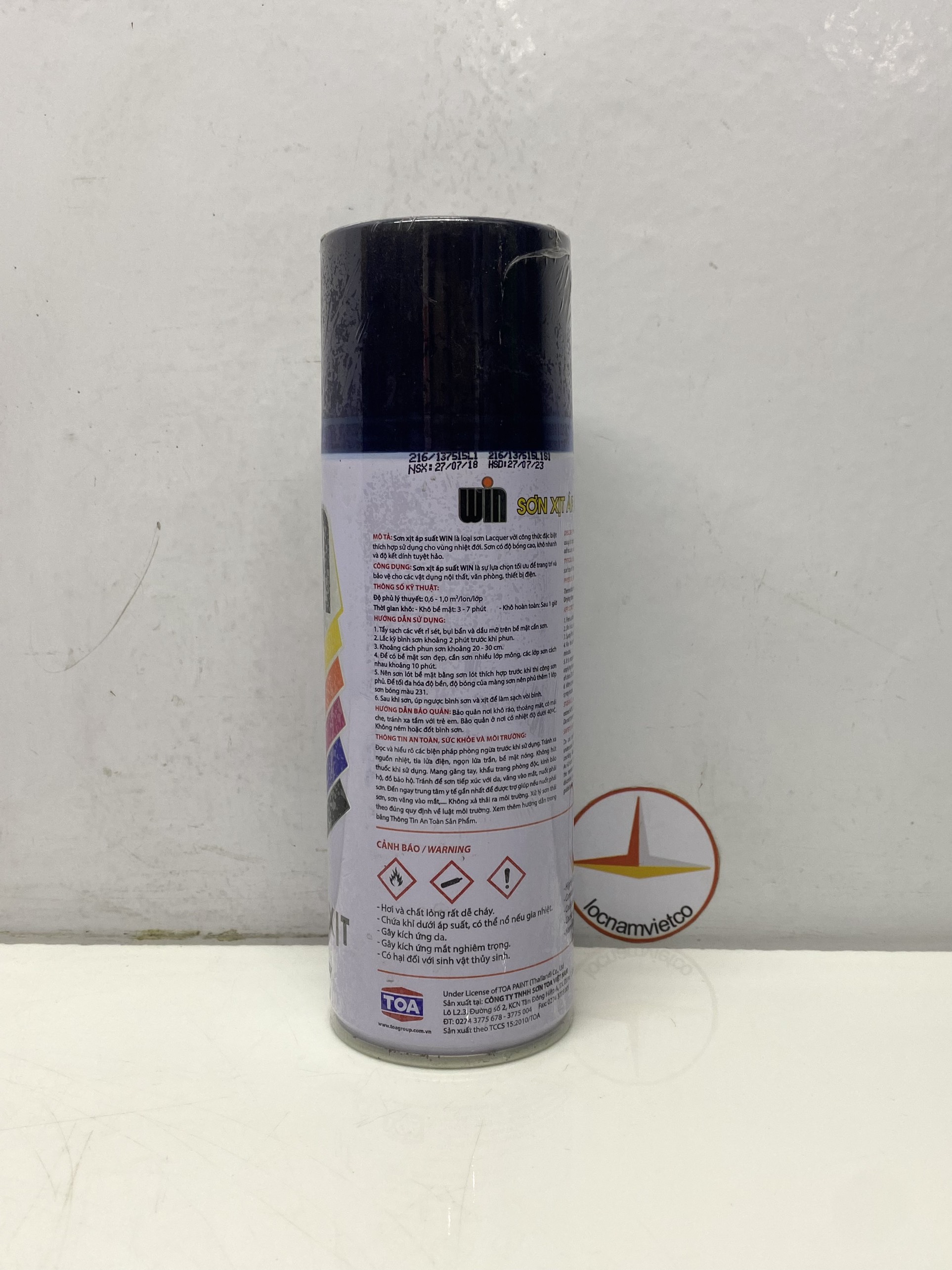 - Sau khi sơn, úp ngược lon sơn và xịt để làm sạch vòi phun. Sản phẩm được phân phối bởi: Công ty TNHH Lộc Nam Việt 1933 QL51, Phước Tân, Biên Hòa, Đồng Nai '0948 79 5588'