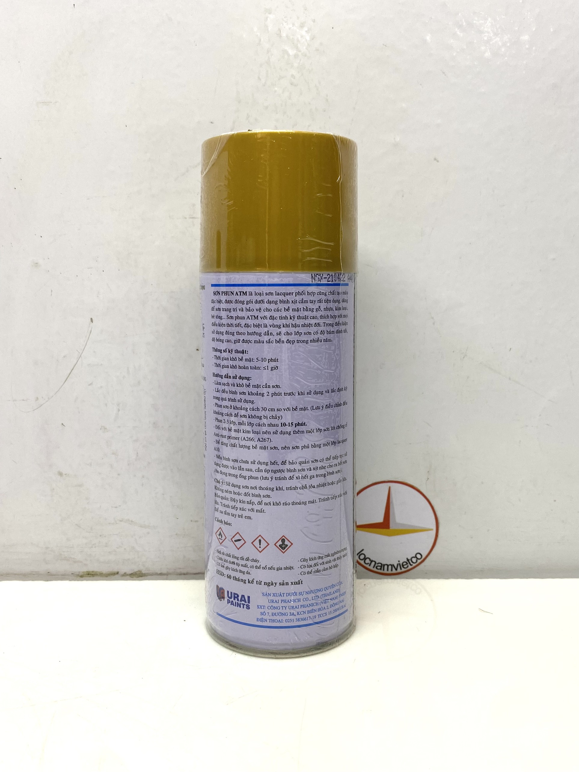 Sơn xịt xe máy màu vàng ánh kim ATM A400 SƠN PHUN “ATM” ACRYLIC: Đặc chế từ hỗn hợp nhựa N/C và ACRYLIC, được đóng gói dưới dạng bình xịt cầm tay rất tiện dụng,