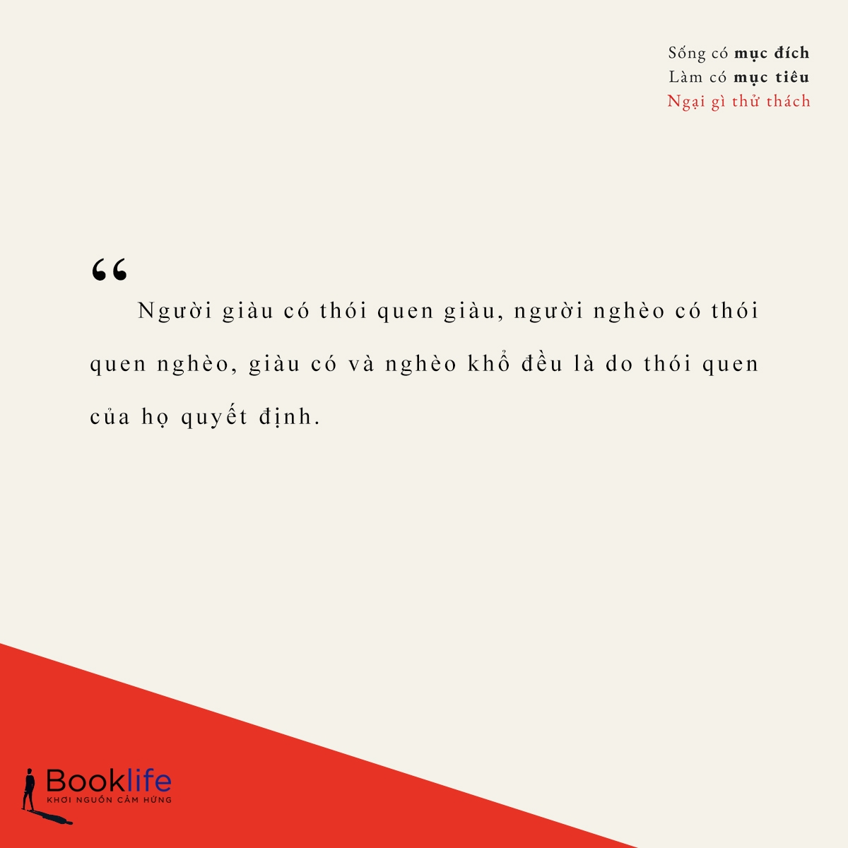 "Người giàu có thói quen giàu, người nghèo có thói quen nghèo, giàu có và nghèo khổ đều là do thói quen của họ quyết định."
