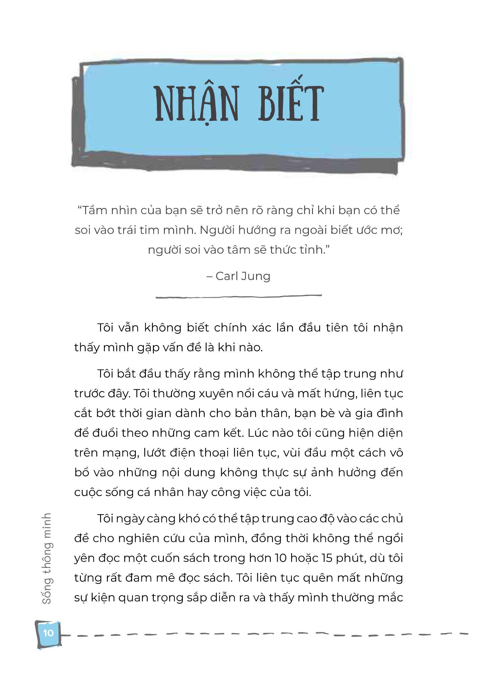 - Khả năng sáng tạo Ai là người nắm giữ số phận của bạn? Liệu có phải bạn không? Nếu bạn thấy m.ình không thể kéo dài hơn một vài phút mà không kiểm tra điện thoại hoặc trở thành nạn nhân của một số phiền nhiễu kỹ thuật số khác, thì bạn không đơn độc đâu. Tác động ăn mòn của sự xao lãng và làm nhiều việc cùng lúc là rất quan trọng và bạn biết m.ình có khả năng làm được nhiều hơn thế. Hãy đọc cuốn sách này để tìm hiểu cách bạn có thể làm chủ khả năng tập trung và sáng tạo, đồng thời ngừng để những phiền nhiễu làm chủ bạn. Sống thông minh nói về: