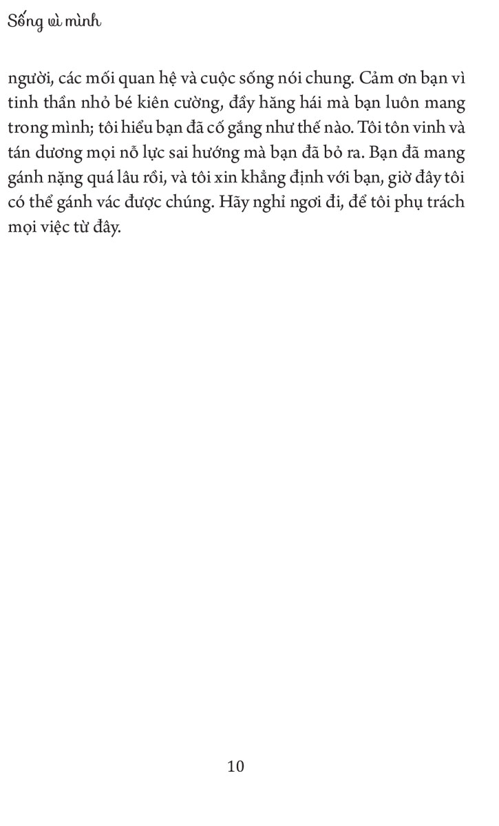 Sống Vì Mình Bạn có cảm thấy bất hạnh không? Bạn có cảm thấy bị đối xử tàn tệ không? Bạn có xu hướng nỗ lực rất nhiều trong mối quan hệ không? Bạn