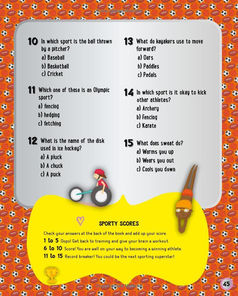 Simple tasks will test your skills and reinforce the information you read in the book. Do you know where your Achilles heel is? Can you check your pulse? How do you train and prepare for an important competition? Take a look inside to find out!