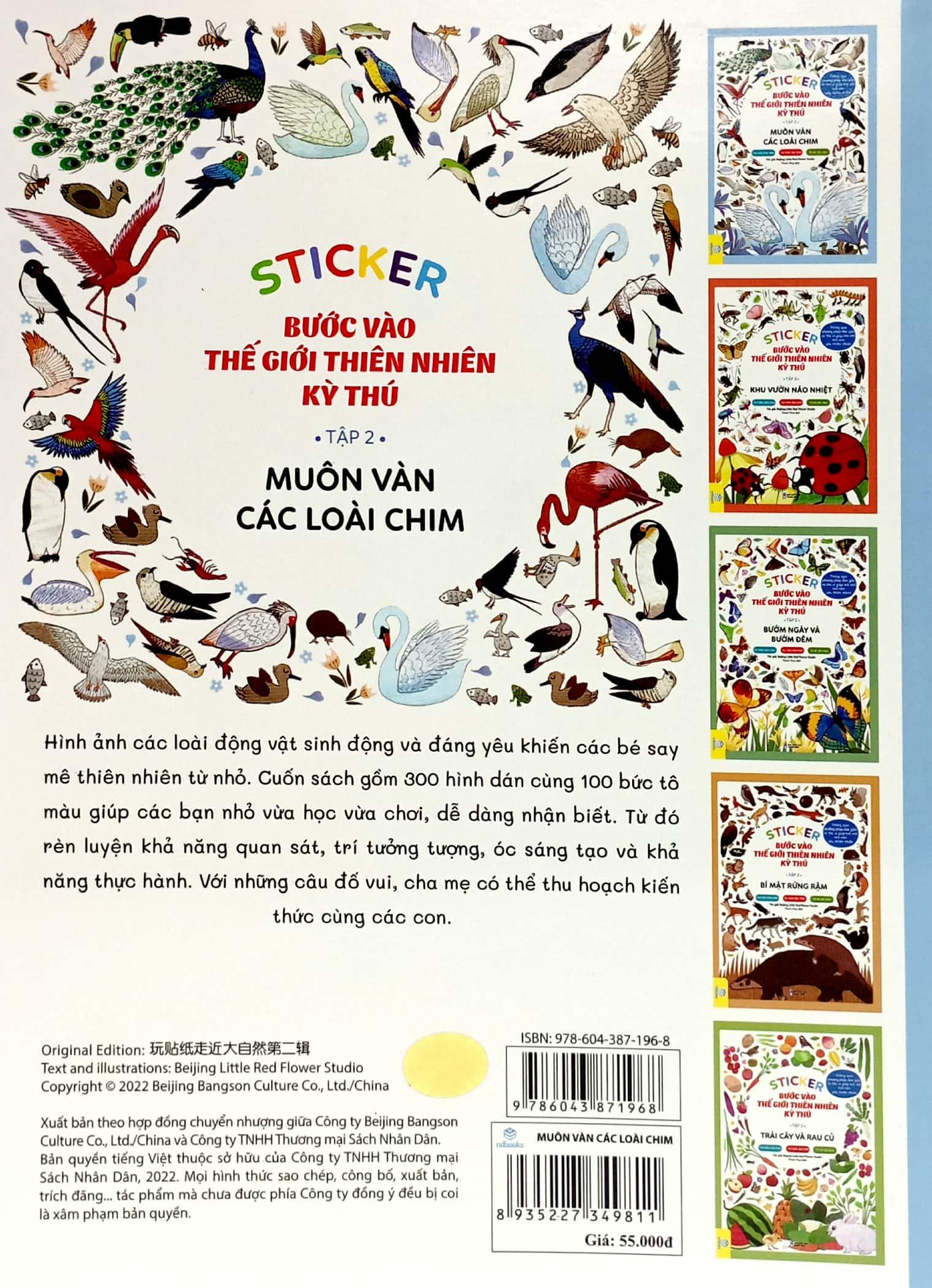 Hình ảnh các loài động vật sinh động và đáng yêu khiến các bé say mê thiên nhiên từ nhỏ. Cuốn sách gồm 300 hình dán cùng 100 bức tô màu giúp các bạn nhỏ vừa học vừa chơi, dễ dàng nhận biết. Từ đó rèn luyện khả năng quan sát, trí tưởng tượng, óc sáng tạo và khả năng thực hành. Với những câu đố vui, cha mẹ có thể thu hoạch kiến thức cùng các con.