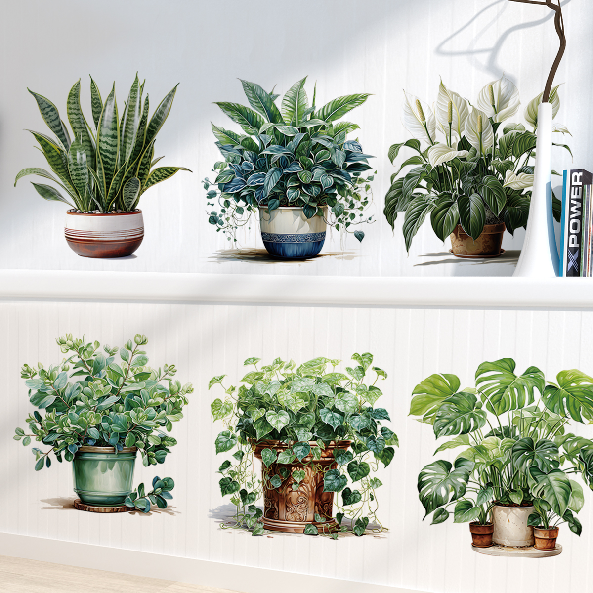 ✨Sticker Giấy Dán Tường Decal Dán tường Tranh Dán Tường Trang Trí Tường Mẫu 6 Chậu Hoa Lá Hoa Lá ZH-1009