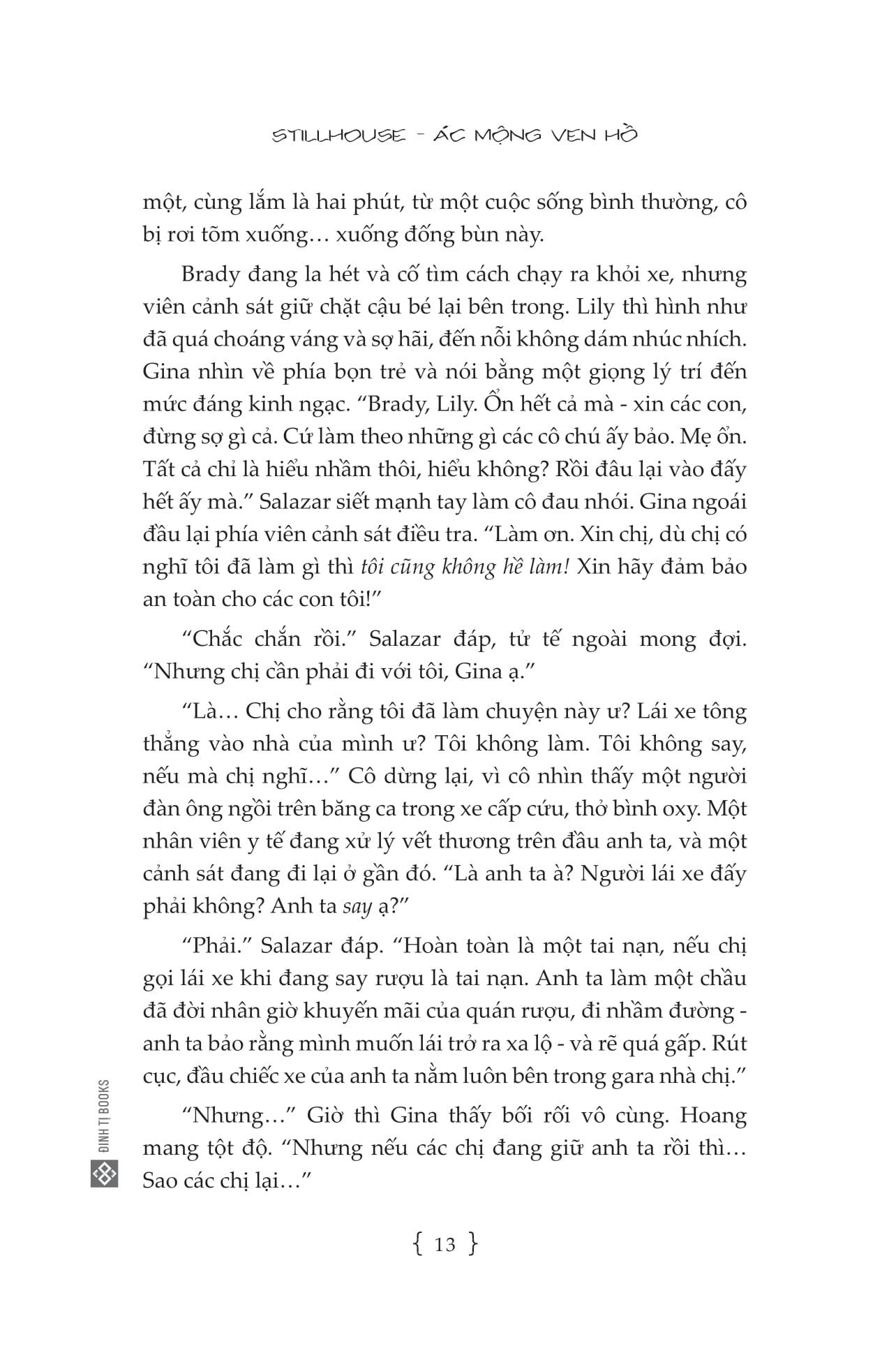 Là tập đầu tiên trong series trinh thám Stillhouse gồm ba cuốn, cùng với Con lạch chết chóc và Dòng sông hắc ám, Ác mộng ven hồ sẽ đưa người đọc cùng Gina trải qua hành trình đi tìm sự thật với vô vàn ngã rẽ cùng những nút thắt mở bất ngờ đến phút chót .