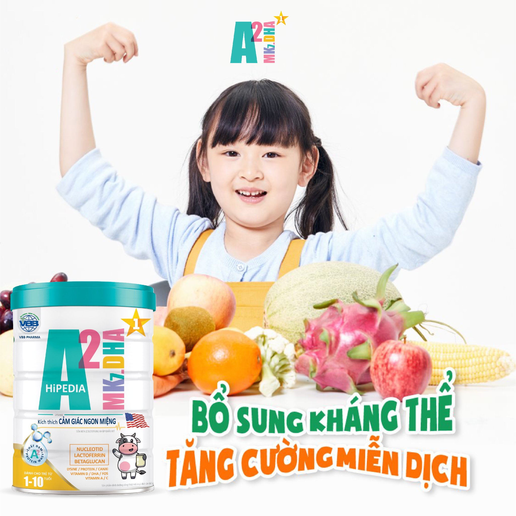 Sữa A2 Mk7.DHA HiPedia - Công Thức Cải Tiến Ngôi Sao Số 1 mang đến giải pháp tăng cân khoa học và hoàn hảo với nguồn dinh dưỡng cân đối, đậm độ linh hoạt đảm bảo cung cấp vừa đủ lượng Kcal trong ngày và ứng dụng ĐẠM QUÝ cực kì thân thiện với đường ruột. Với trẻ biếng ăn, hấp thu kém, việc bổ sung đạm quý lại càng cần thiết để giúp con bắt kịp đà tăng trưởng, khỏe mạnh hơn.