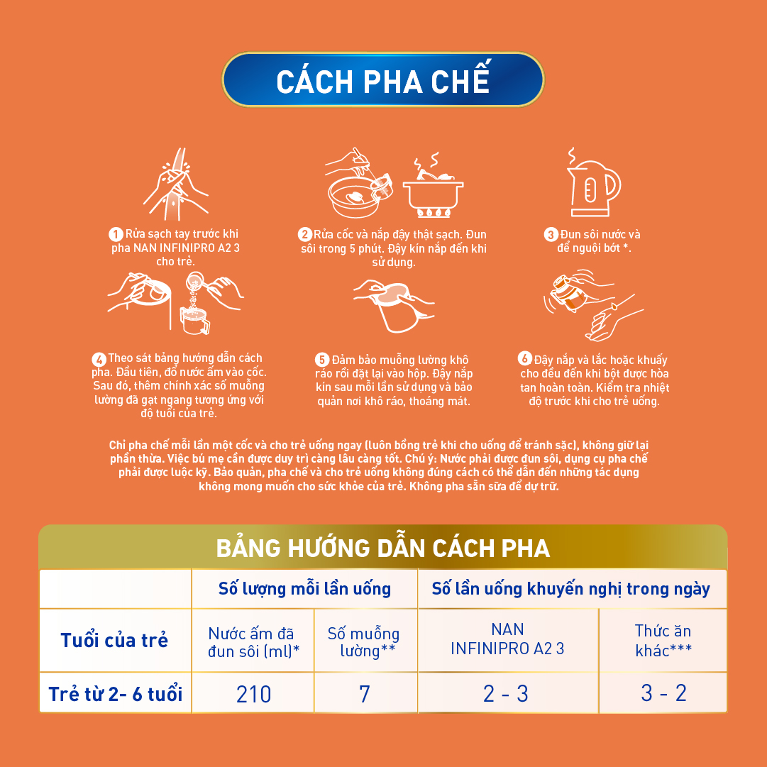 - Rửa sạch tay trước khi pha NAN INFINIPRO A2 3 cho trẻ