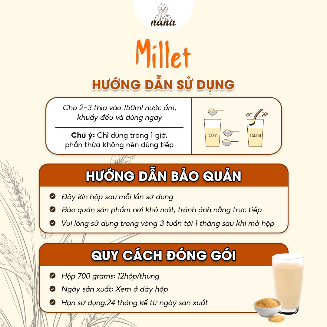 Millet là một sản phẩm sữa thực vật với nguyên liệu chính là thực vật hữu cơ ở dạng nảy mầm giúp tối ưu hóa thành phần dinh dưỡng chứa trong các loại hạt, giúp cơ thể dễ dàng hấp thu và loại bỏ tối đa các chất cản trở hấp thu.
