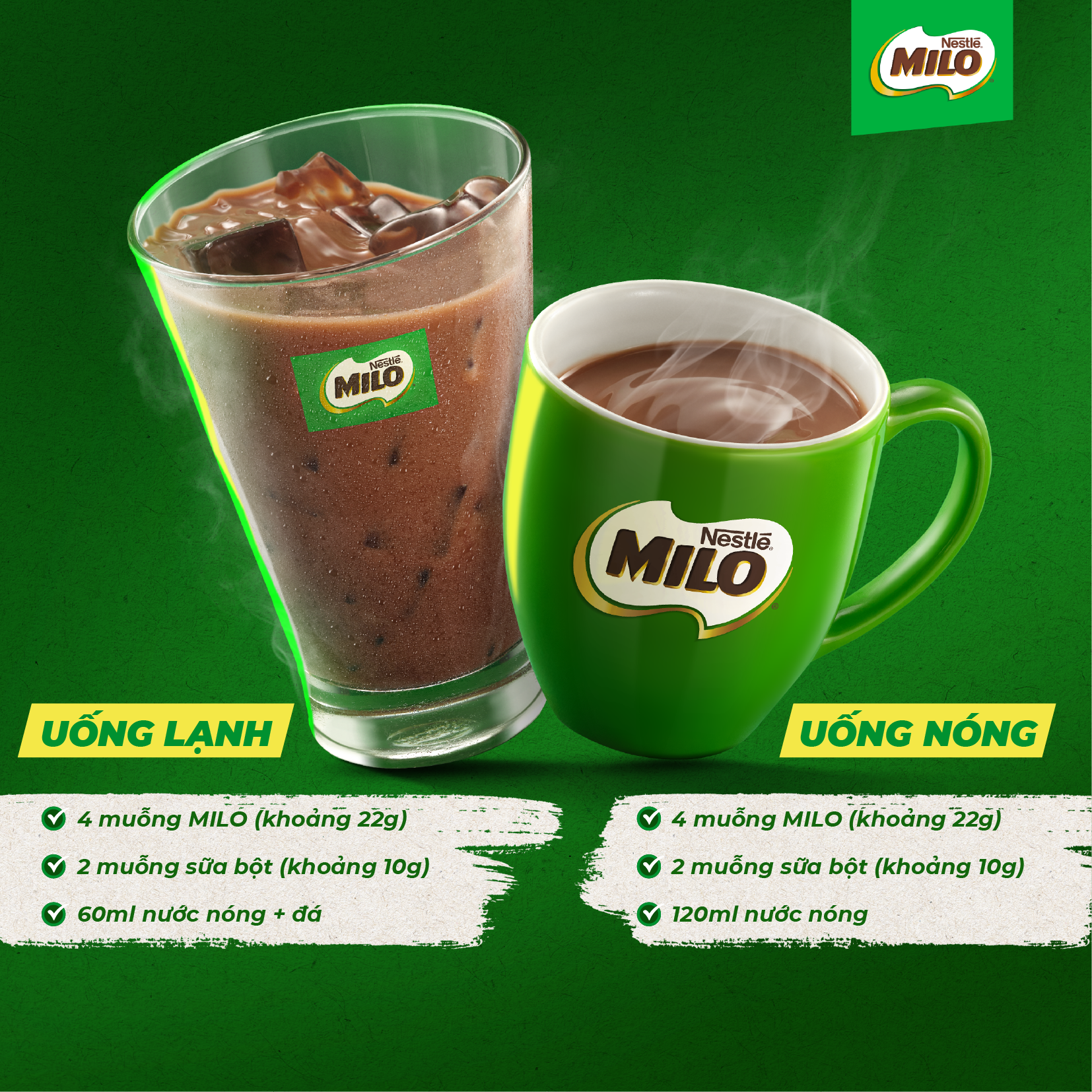 - Uống Nestlé Milo mỗi ngày giúp bổ sung năng lượng và dưỡng chất thiết yếu, cho trẻ năng động mỗi ngày.
