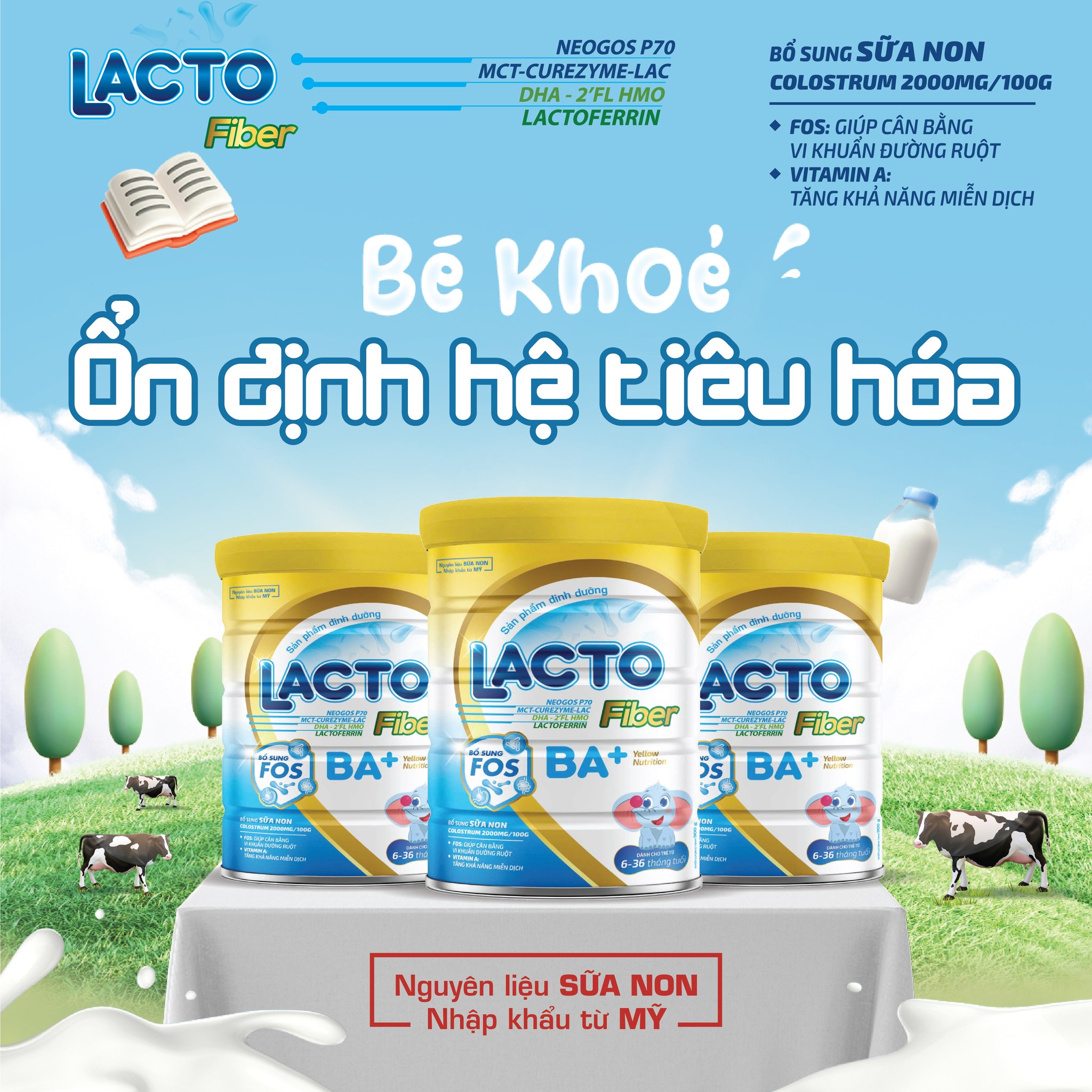 Sữa non chứa kháng thể tự nhiên, cung cấp bảo vệ toàn diện cho trẻ. Vậy nên, Sản phẩm này giúp trẻ phát triển toàn diện và khỏe mạnh, hỗ trợ tiêu hóa tốt hơn. Lacto Fiber BA+ được đóng gói tiện lợi, dễ sử dụng và bảo quản.