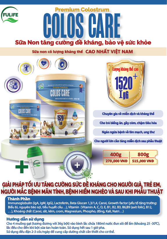 Sữa Non Colos Care giúp tăng cường sức đề kháng, hệ miễn dịch và bảo vệ sức khỏe toàn diện. Có lượng kháng thể cao nhất Việt Nam với nguồn nguyên liệu từ Mỹ, đảm
