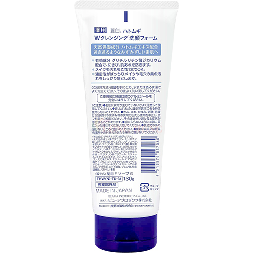 Sữa rửa mặt Kumano Reihaku Hatomugi W Cleansing Foam Thành phần: Dipotassium Glycyrrhizate, Water, Glycerin, Myristic Acid, Stearic Acid, Polyethylene Glycol, Potassium Hydroxide, Lauric Acid, Palmitic Acid, Glyceryl Stearate, Glyceryl Stearate SE, Polyquaternium-7, Glycol Distearate,