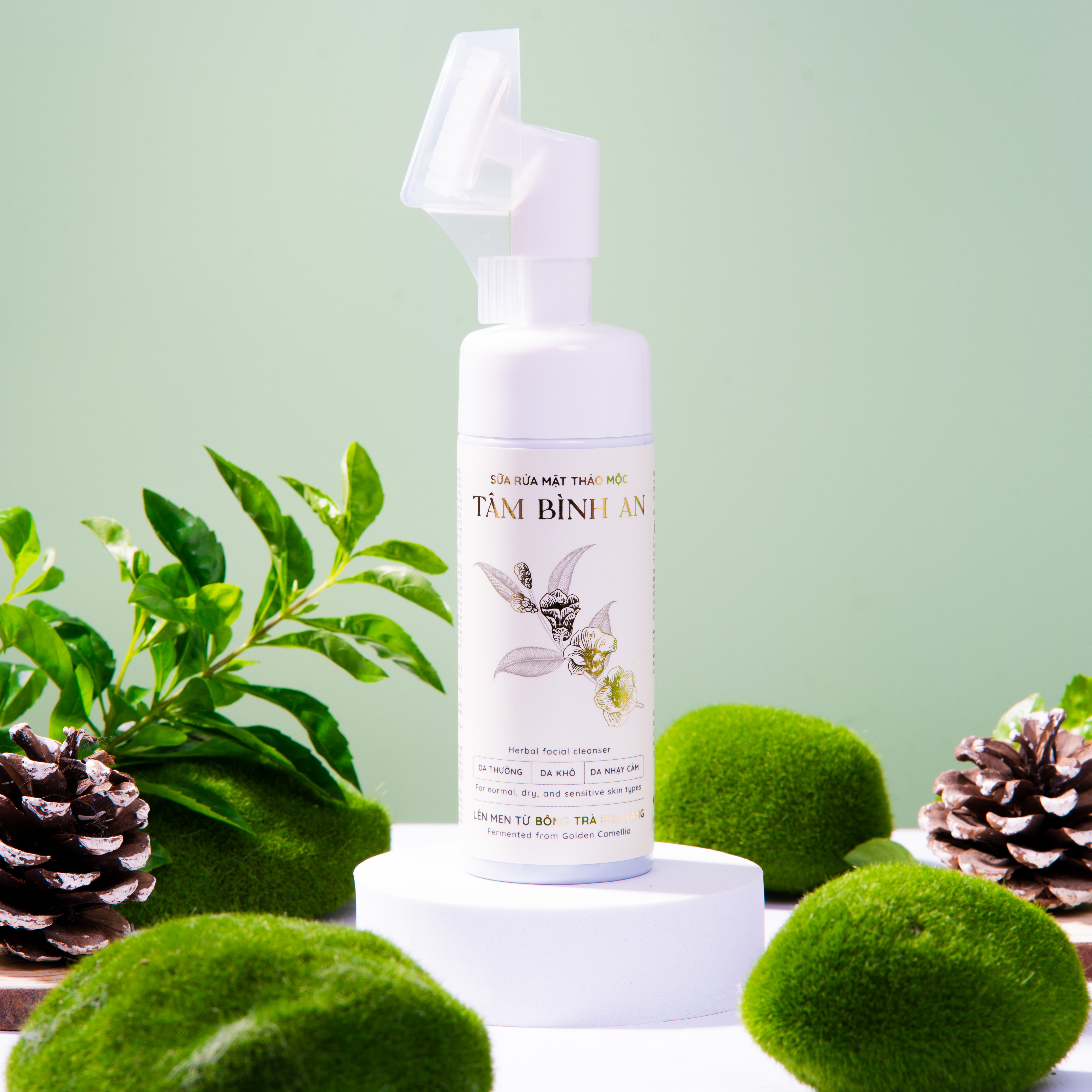Mua tại TiktokMô tả: Sữa rửa mặt thảo mộc Tâm Bình An gồm các thành phần chủ yếu từ thiên nhiên, chiết xuất từ Trà Hoa Vàng mang tới các công dụng như làm sạch sâu, làm thông thoáng lỗ chân lông, duy trì độ ẩm tự nhiên cho da, chống oxy hóa vượt trội giúp ngăn ngừa mụn trên da, giúp da luôn tươi sáng và mềm mại. Dung tích: 150ml Ưu điểm: An toàn cho da: Đã được kiểm nghiệm da liễu Không chứa hóa chất độc hại, an toàn cho mọi loại da, kể cả da nhạy cảm. Làm sạch cho da hiệu quả: Loại bỏ bụi bẩn, bã nhờn và tế bào chết trên da giúp da thông thoáng và khỏe mạnh. Kích thích sản sinh collagen, giúp da săn chắc, trẻ trung và đàn hồi. Cấp ẩm và dưỡng da mềm mại: Nhờ chiết xuất từ Trà Hoa Vàng giàu vitamin, khoáng chất và các hợp chất chống oxy hóa, giúp nuôi dưỡng da từ sâu bên trong. Kiểm soát dầu nhờn: Loại bỏ bã nhờn dư thừa trên da, giúp da thông thoáng, ngăn ngừa mụn trứng cá. Thiết kế đầu rửa tạo bọt silicon giúp matxa da mặt, tạo bọt giúp thẩm thấu cho da tốt hơn, tiện lợi, dễ dàng tháo rời vệ sinh. Thành phần: Purified Water, Camellia Chrysantha (Trà Hoa Vàng), Perilla Frutescens Leaf Extract (Chiết xuất Lá Tía Tô), Lactuca indica Root Extract (Chiết xuất Rễ Bồ Công Anh), Saccharomyces/Rice Bran Ferment (Nguyên liệu lên men từ mầm cám Gạo), Ananas Sativus (Pineapple) Fruit Extract (Chiết xuất quả Dứa), Aqua (and) Disodium Cocoyl Glutamate (and) Sodium Cocoyl Glutamate, Hydrolyzed Yeast Protein, Glycerin, Tocopheryl Acetate (Vitamin E), PEG-40 Hydrogenated Castor Oil, Phenoxyethanol (and) Ethylhexylglycerin, Allantoin, Fragrance (Santal 33). KHÔNG CHỨA: SILICON, PARABEN, MÀU TỔNG HỢP, CHẤT CẤM, HÓA CHẤT, MÀI MÒN DA, GÂY TÁC DỤNG PHỤ. Công nghệ lên men tự nhiên giữ dưỡng chất mang lại hiệu quả rõ rệt sau 1-2 tuần sử dụng Công dụng: