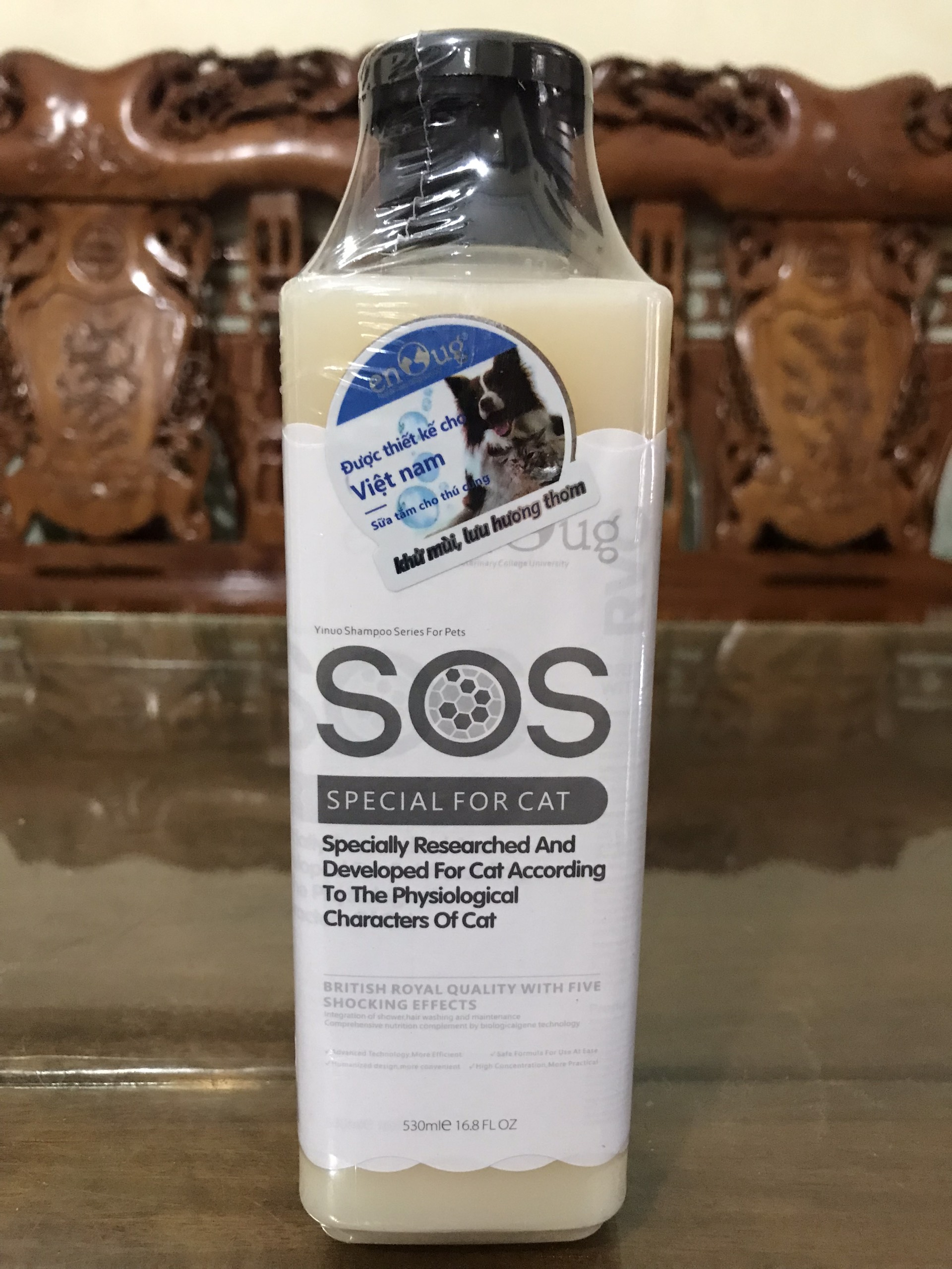 - Sản phẩm sữa tắm SOS được sản xuất dựa theo đặc tính sinh lý, là thích hợp với nhiều giống loài chó mèo khác nhau. Nó có chứa nồng độ cao vitamin acerbity không làm ảnh hưởng đến da và lông của mèo.