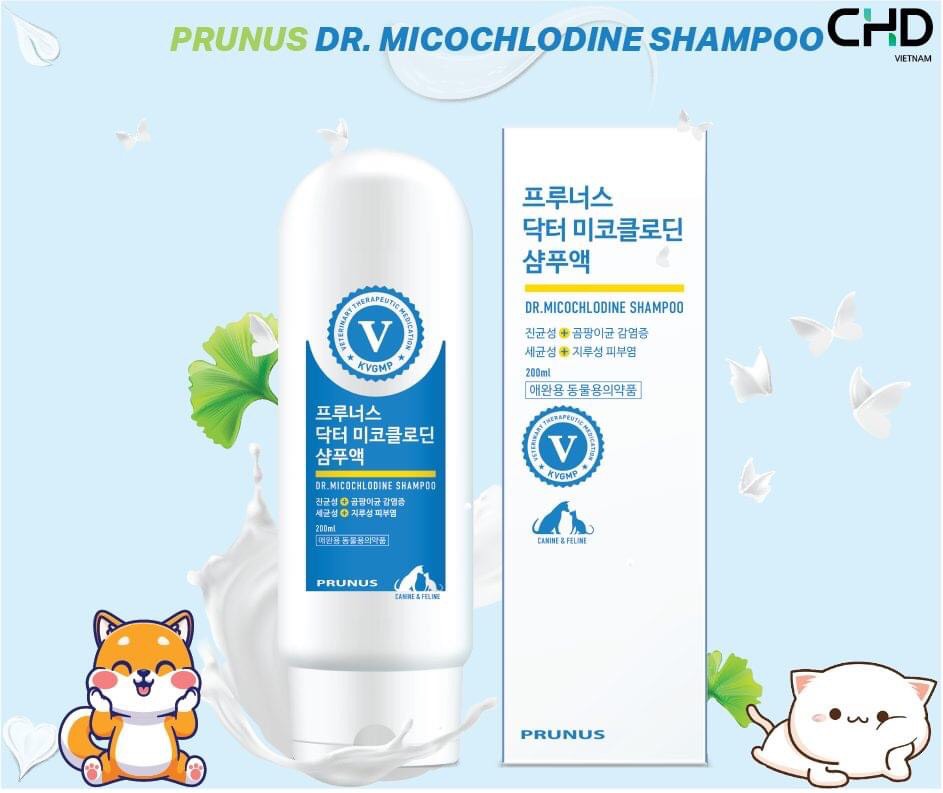 ✨SỮA TẮM TRỊ NẤM VÀ VIÊM DA CHO CHÓ MÈO PRUNUS DR. MICOCHLODINE SHAMPOO 200ml