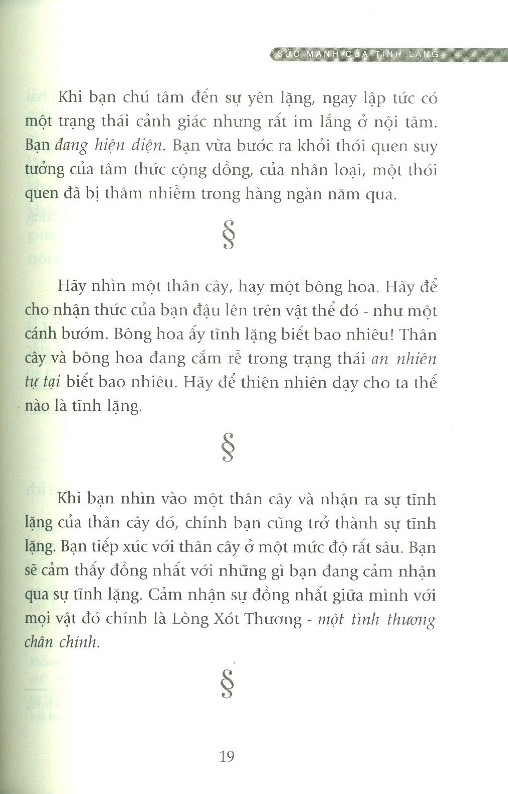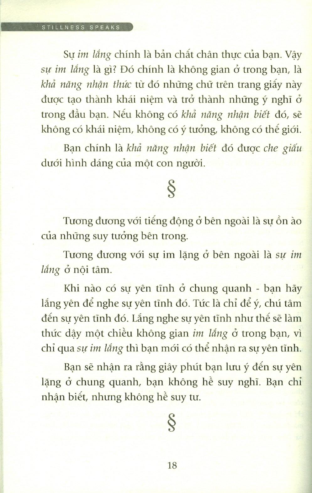 "Sức Mạnh của Tĩnh Lặng" (Stillness Speaks) – là tác phẩm tâm linh rất ngắn gọn nhưng sâu sắc của Eckhart Tolle, tác giả được New York Times bình chọn là một trong những tác giả có sách bán chạy nhất.