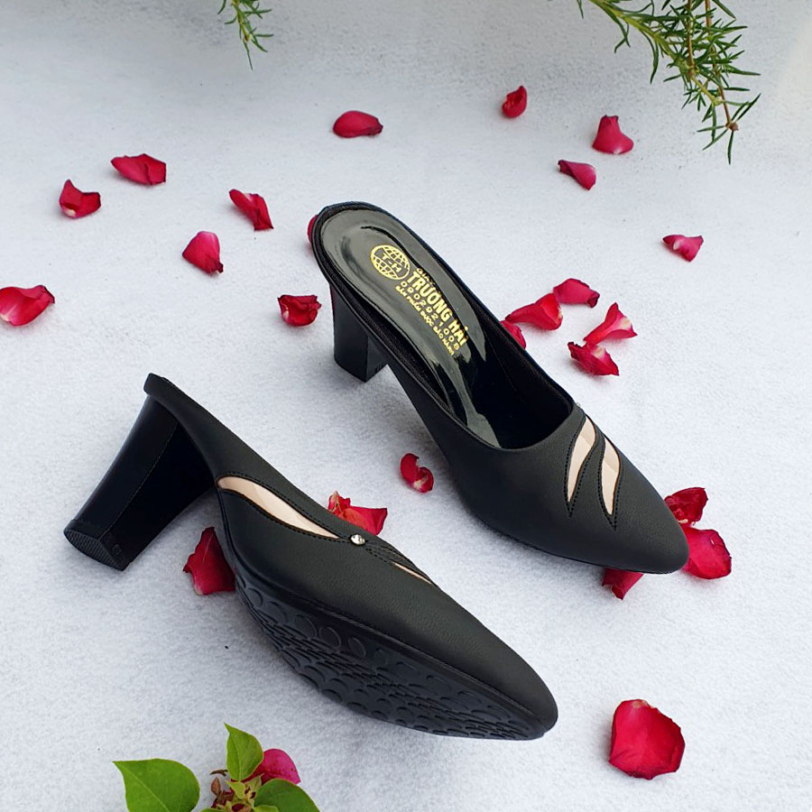 ✨Sục nữ cao gót 7cm da mềm mại màu đen Trường Hải S112