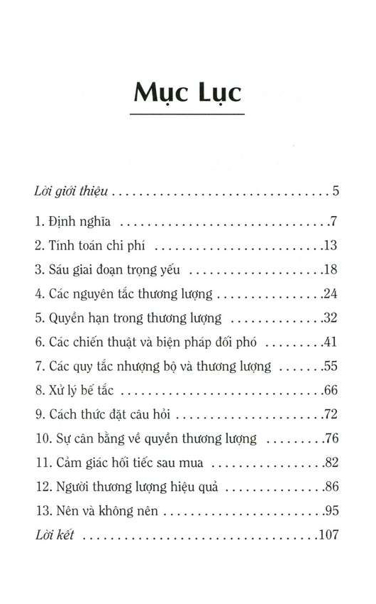 Những yếu tố chính yếu nhằm thương lượng hiệu quả hơn đều được trình bày cụ thể để áp dụng cho việc mua bán trong kinh doanh. Hãy linh động áp dụng những nguyên tắc trong cuốn sách này, chắc chắn kết quả sẽ không làm bạn thất vọng: lợi nhuận bạn thu về tăng lên, vị thế thương lượng của bạn vững chắc hơn và những nhượng bộ tốt nhất sẽ đến với bạn.