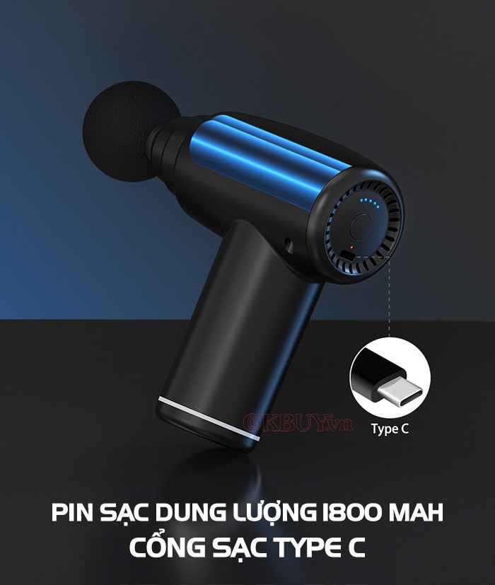 - Có 4 đầu massage: đầu hình cầu, đầu chữ U, đầu phẳng, đầu hình trụ - Tốc độ động cơ: 3200 PRM - Thời gian sạc 3h - Dung lượng pin: 2000 mAh -