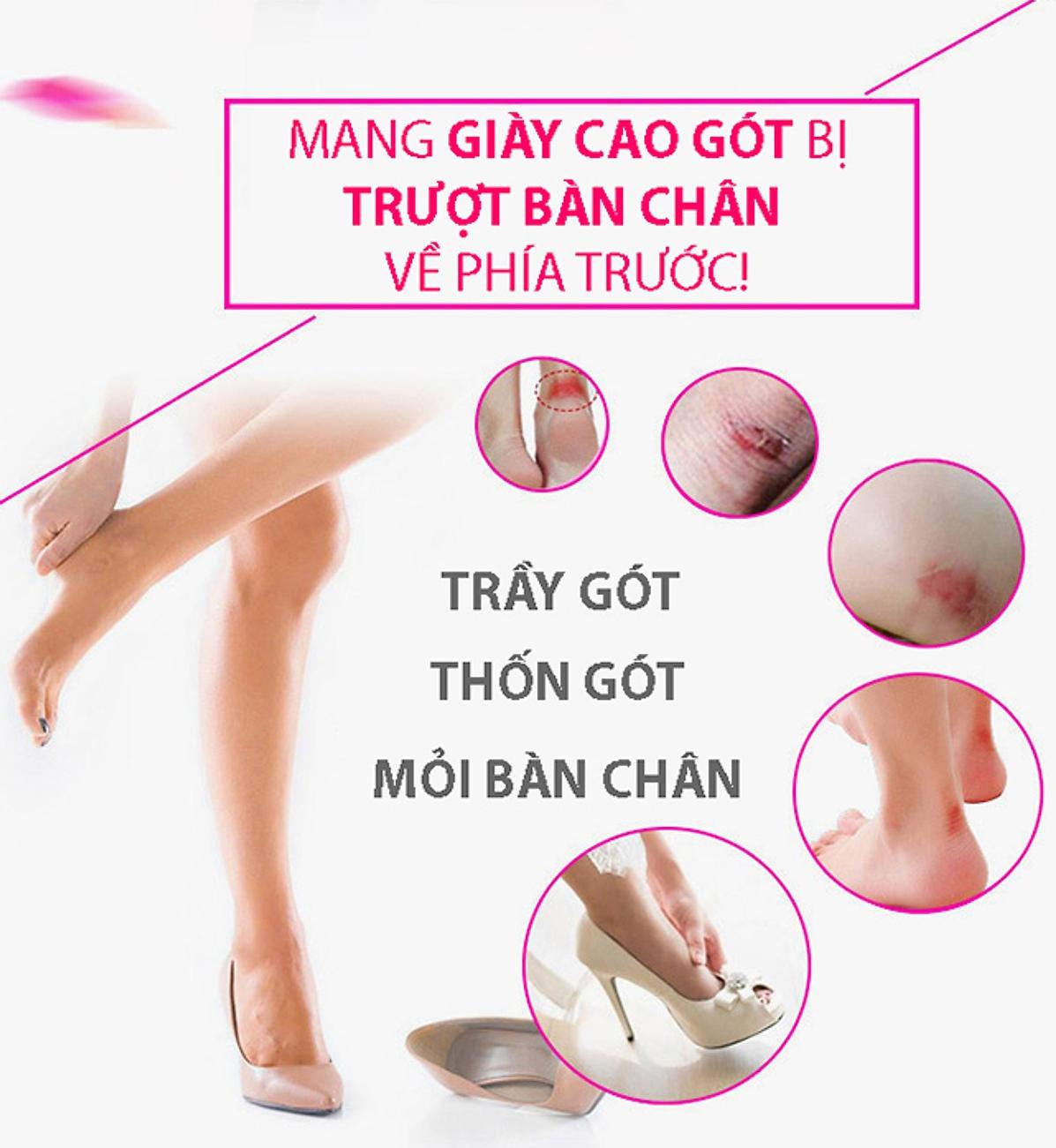 Mô tả sản phẩm Giày cao gót thật quyến rũ và cũng thật "Đau Đớn" đối với đôi bàn chân. Không ít trường hợp bị trầy da chảy máu, chai sần da gót sau, thốn