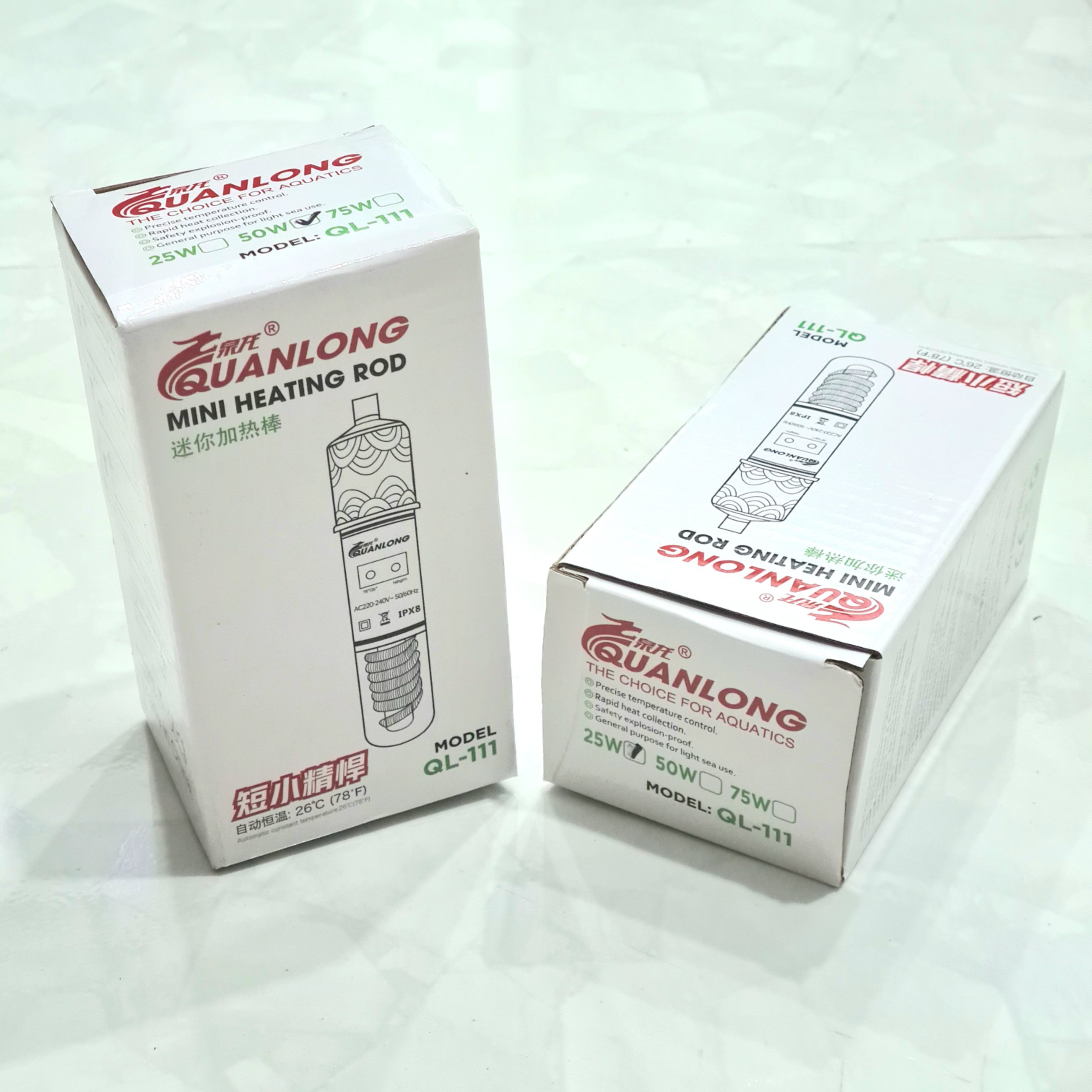 Sưởi QuanLong Mini Heating Rod 25W, 50W là thiết bị sưởi chất lượng được làm bằng thủy tinh thạch anh chống sốc, cho nhiệt độ nước ổn định chính xác. Kích thước rất nhỏ gọn, dễ dàng lắp đặt sử dụng, tích hợp đèn báo hiệu thanh sưởi đang ở chế độ on / off.