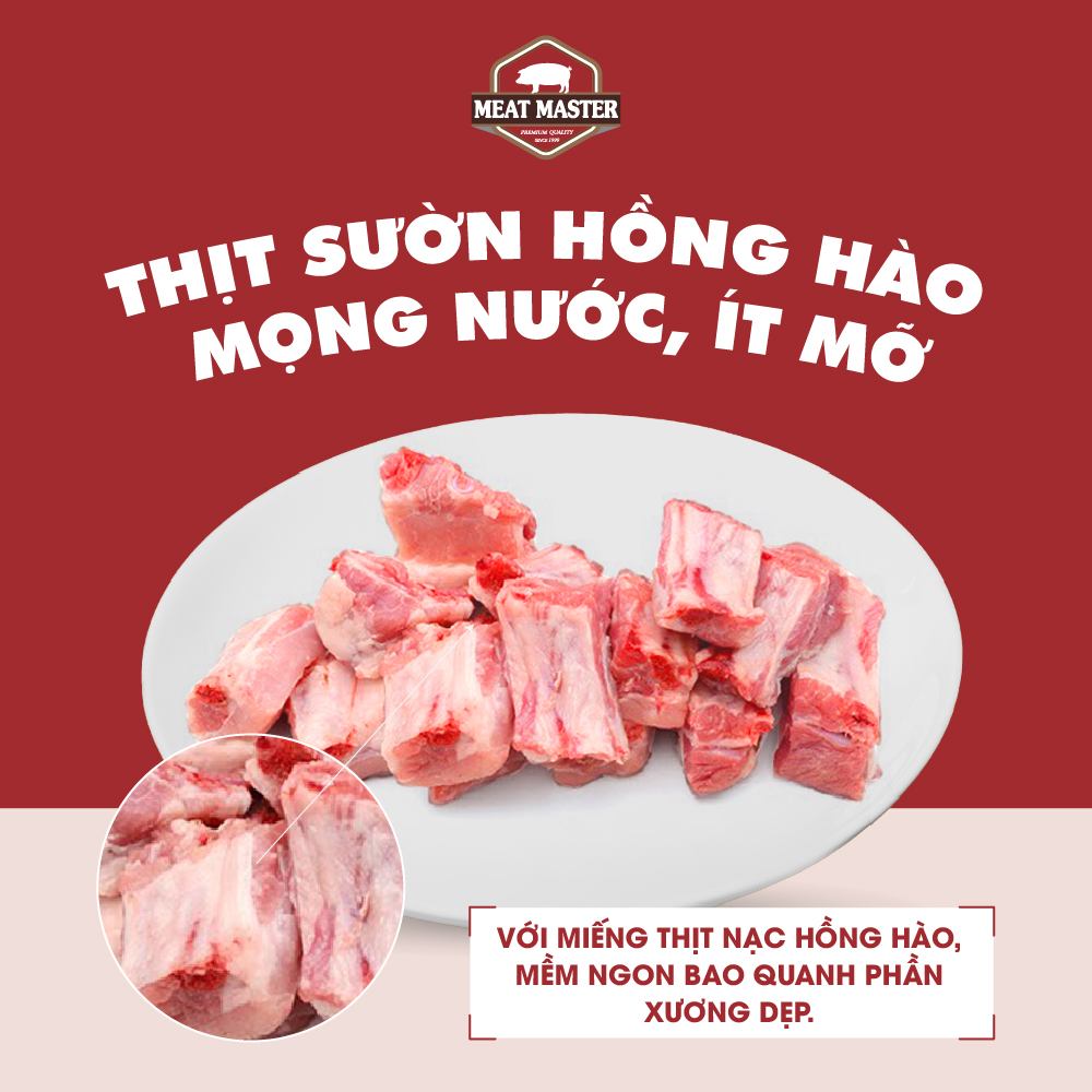 Với sản phẩm tươi sống, trọng lượng thực tế có thể chênh lệch khoảng 10%. Nạc dăm Hoa Meat Master là phần thịt nằm ở lõi vai của con heo, được chọn lọc từ những
