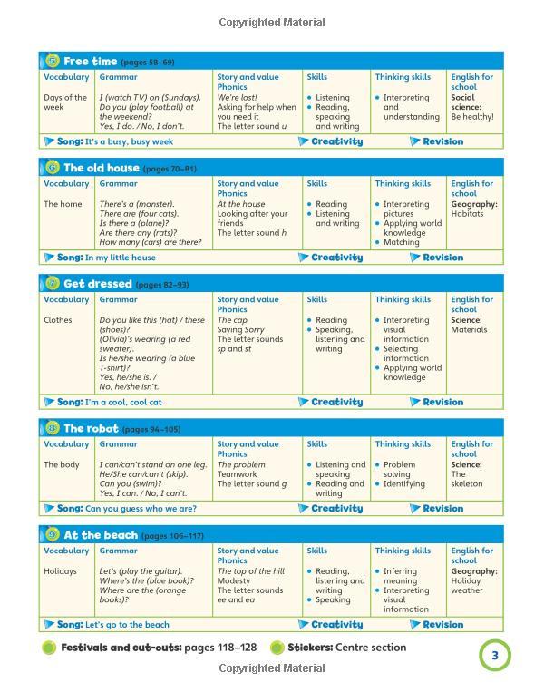 Provides more practice to consolidate the Student Book Picture Dictionary (Levels 1-4) helps with vocabulary practice Grammar Reference Guide (Levels 5-6) offers more practice, and allows students and teachers to check grammar rules