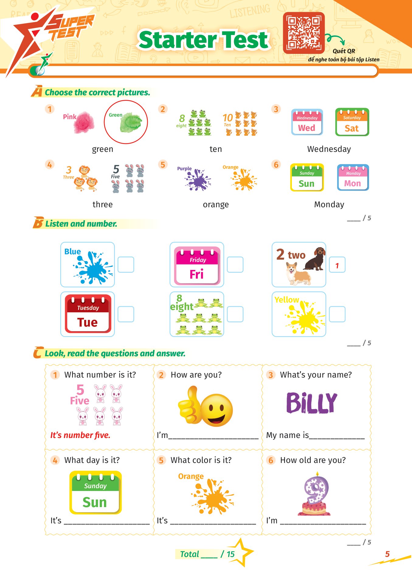 ✨Super Test - Đề Kiểm Tra Nhanh Tiếng Anh Cho Học Sinh (Lớp 1-5) (MGB)