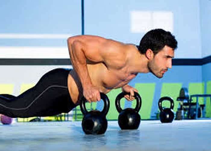 - Trong động tác 4 này, người tập vào tư thế chống đẩy với bàn tay phải nắm quai móc tạ và hai bàn chân cách nhau bằng hông như Hình 1. Ở Hình 2, người tập vừa kéo tạ về một bên ngực, vừa xoay người về tư thế chống tay nghiêng. Tiếp theo, ngược các động tác để trở về tư thế ban đầu. Đó được tính là một lần. Thực hiện 10 lần, sau đó đổi bên.