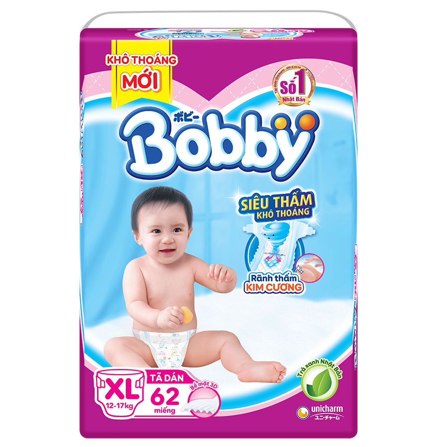 ✨Tã Dán Bobby Siêu Mỏng Thấm Gói Siêu Lớn XL62 (62 Miếng)