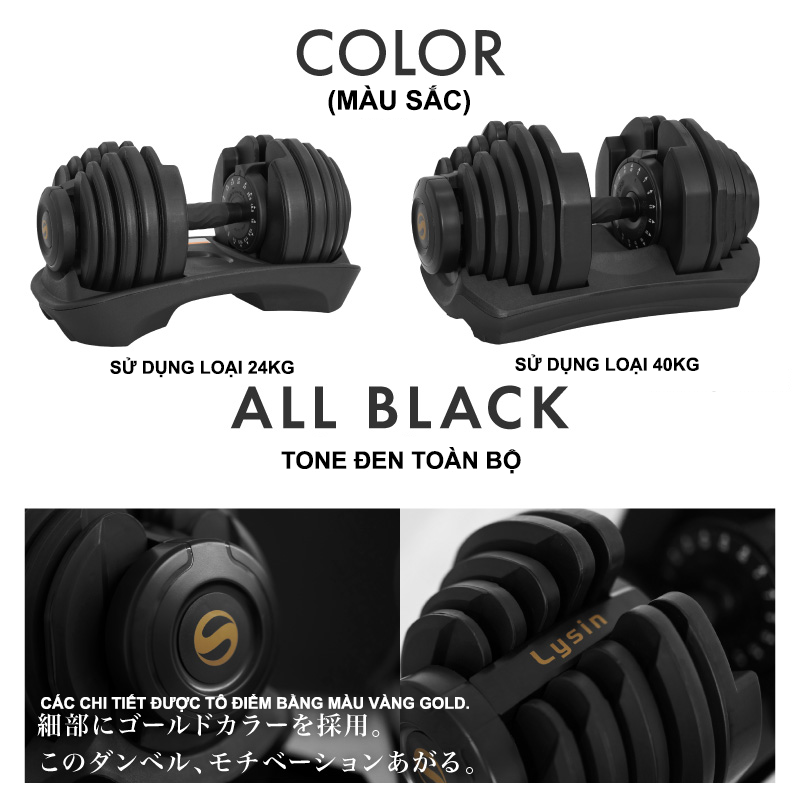 Mô Tả Sản Phẩm Bộ 2 Tạ Tay 48kg Điều Chỉnh Khóa Số Tự Động Cao Cấp mỗi bên 24kg (ảnh thực tế) Màu sắc : Toàn bộ sản phẩm được sơn đen