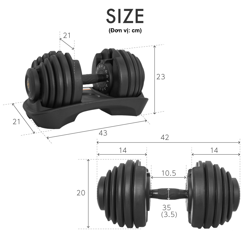 Thông tin tạ tay điều chỉnh 20 Kg - Tạ tay điều chình 20 Kg được thiết kế chắc chắn, với tính thẩm mỹ cao. Có kèm đế đỡ tiện lợi, tránh gây trầy xước cho tạ.