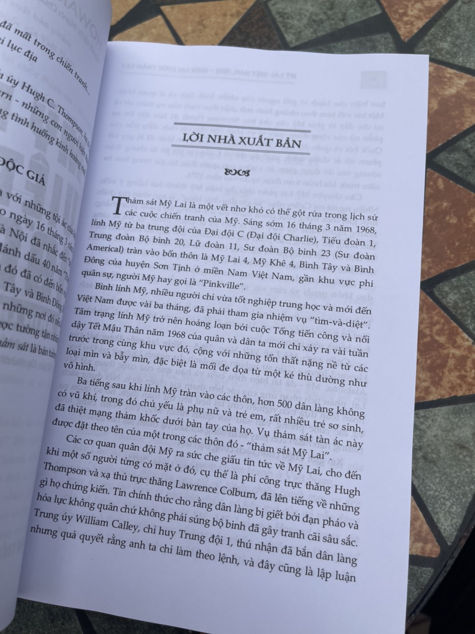 Đầy tính thuyết phục, bao quát và cũng rất ám ảnh, Mỹ Lai: Việt Nam, 1968 - Nhìn lại cuộc thảm sát của Howard Jones - Giáo sư nghiên cứu danh dự ngành Lịch sử tại Đại học Alabama, Mỹ - đã tái hiện vô cùng chi tiết và tỉ về diễn biến và hậu quả của các cuộc thảm sát Mỹ Lai, đồng thời phân tích kỹ lưỡng phản ứng của các bên tham gia chiến dịch. Cuốn sách xứng đáng là tác phẩm tiêu biểu về một trong những sự kiện kinh hoàng của quân đội Mỹ. Nội dung cuốn sách hoàn toàn dựa trên nghiên cứu tài liệu lưu trữ toàn diện, hồ sơ quân sự và các cuộc phỏng vấn sâu rộng với quân nhân Mỹ, Việt Nam cũng như những nạn nhân còn may mắn sống sót sau vụ thảm sát tàn bạo.
