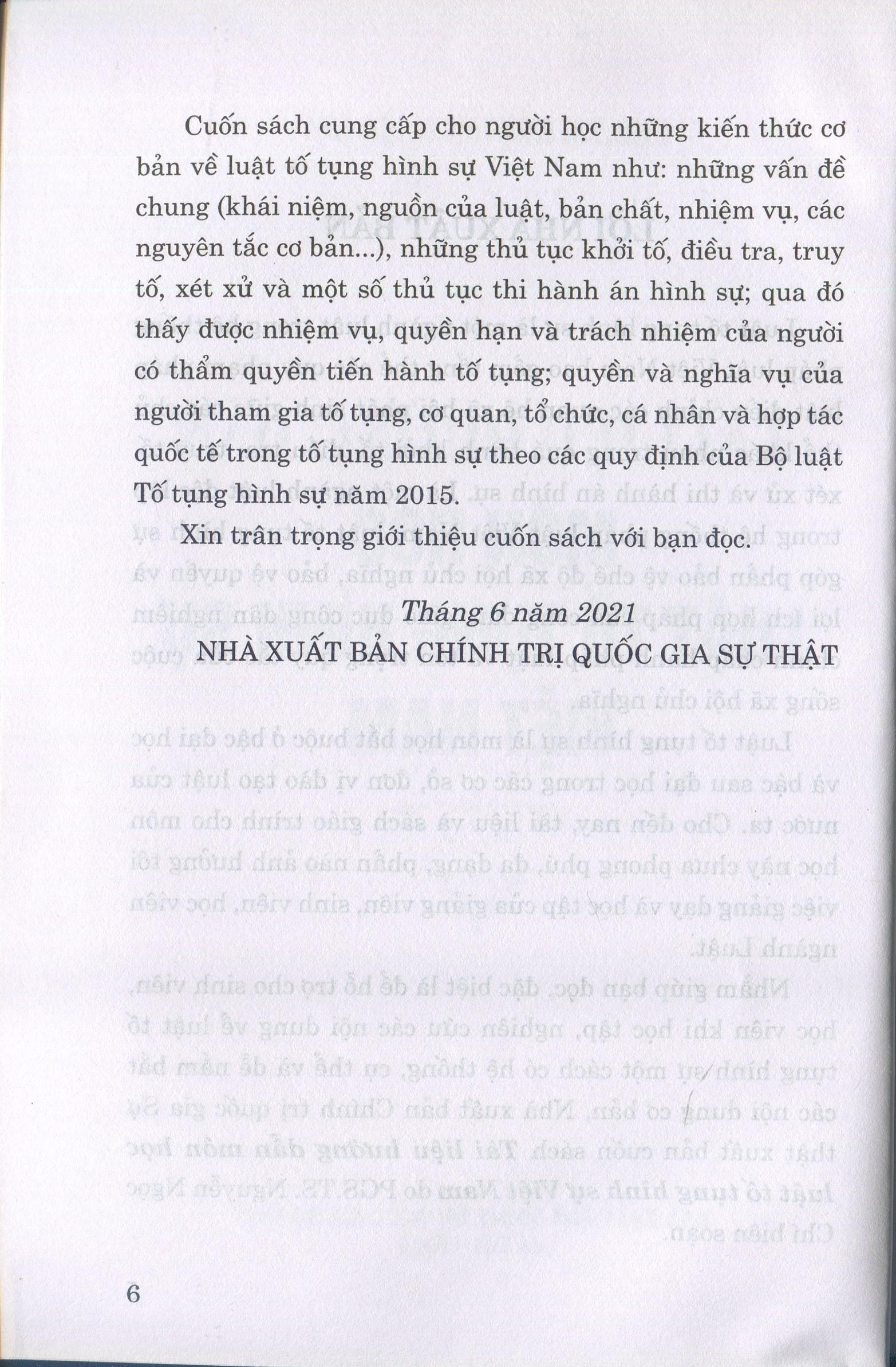 Sách: Giáo Trình Luật Tố Tụng Hình Sự Việt Nam Tác giả: PGS. TS. Nguyễn Ngọc Chí - TS. Lê Lan Chi (Đồng chủ biên) Nhà xuất bản: NXB Đại Học Quốc Gia Hà Nội