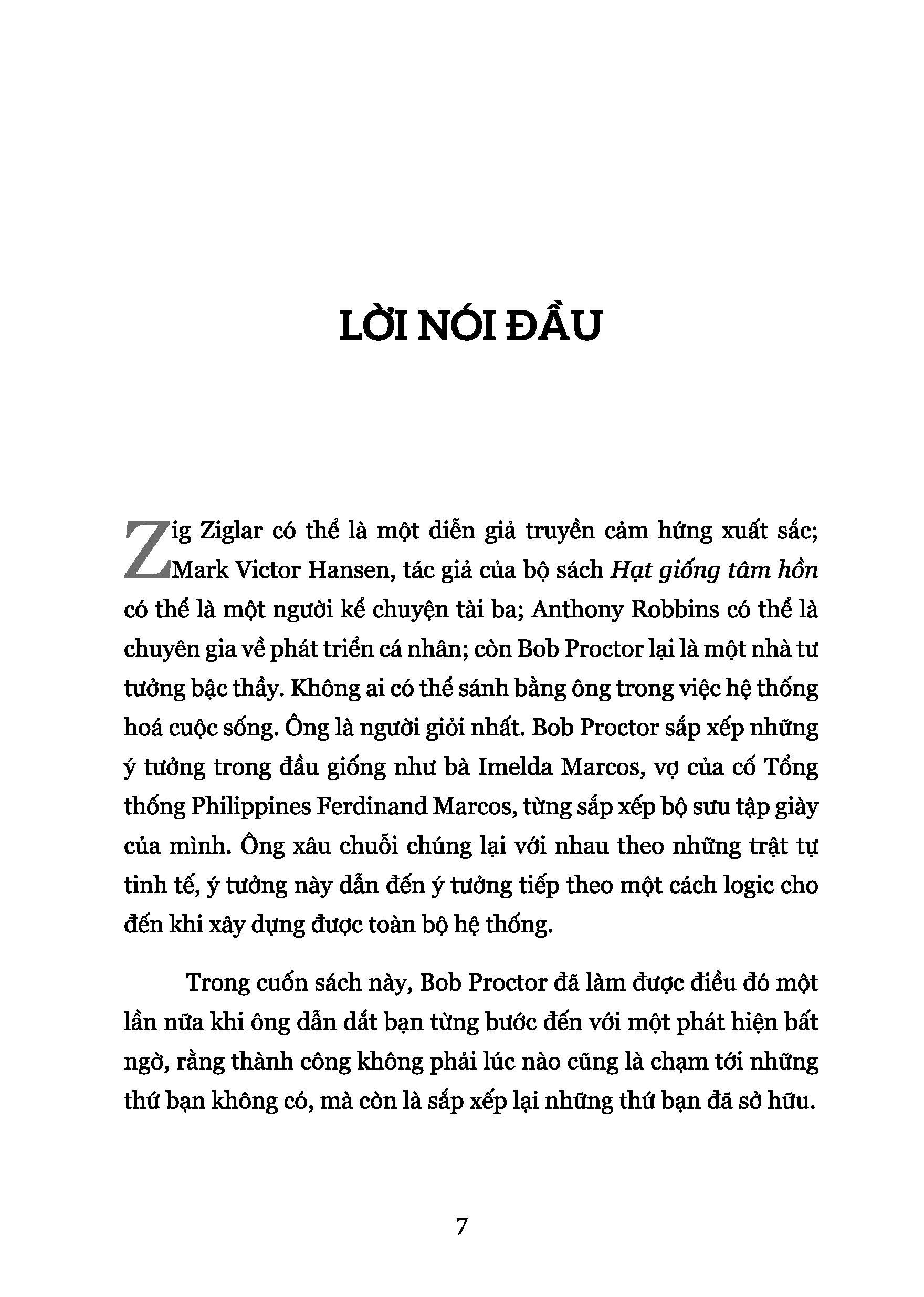 Bob Proctor nổi tiếng khắp thế giới với tư cách là nhà tư tưởng bậc thầy về phát triển cá nhân. Không ai có thể sánh bằng ông trong việc hệ thống hoá cuộc sống. Bob Proctor xâu chuỗi chúng lại với nhau theo những trật tự tinh tế, ý tưởng này dẫn đến ý tưởng tiếp theo một cách logic cho đến khi xây dựng được toàn bộ hệ thống.