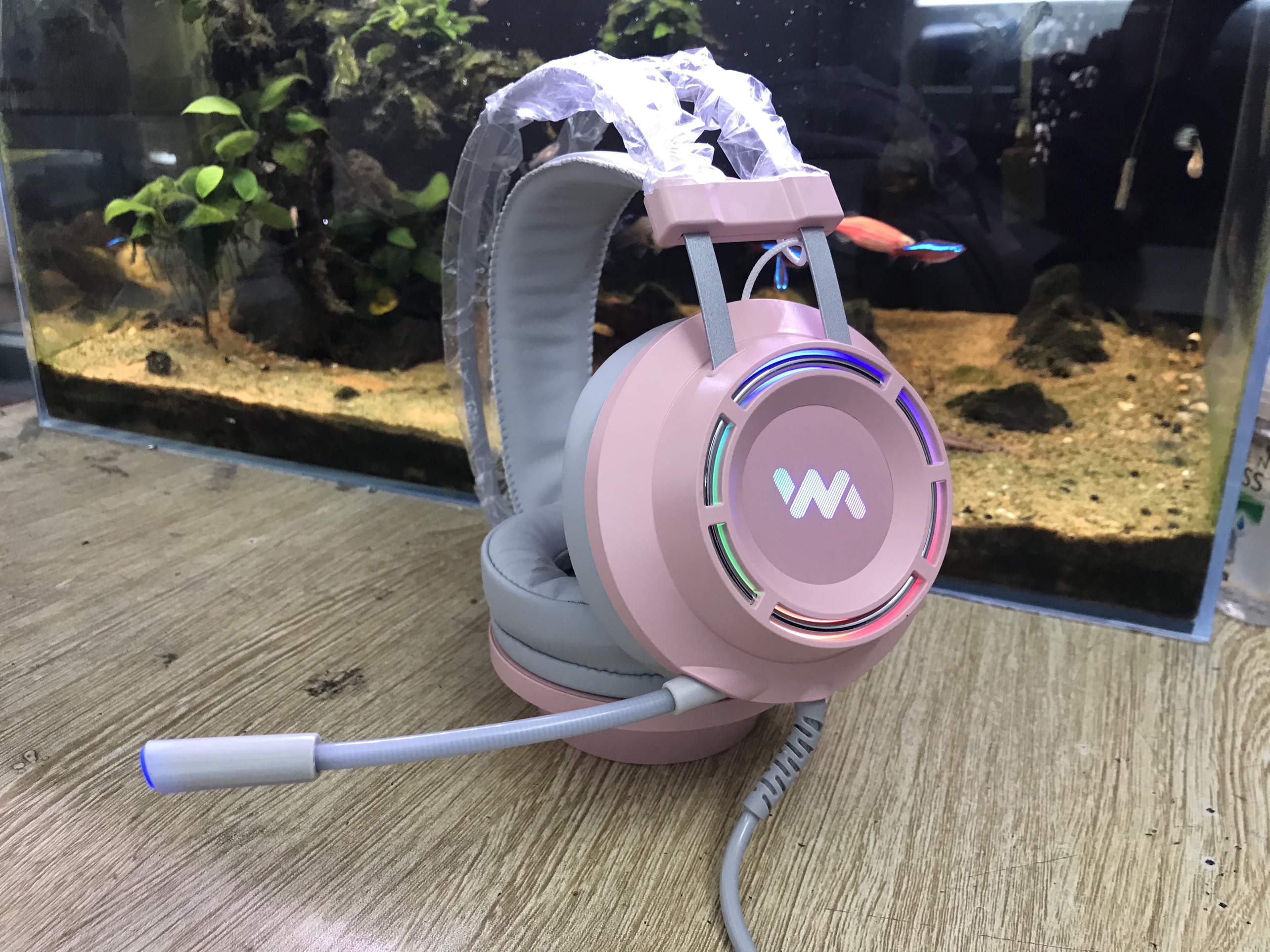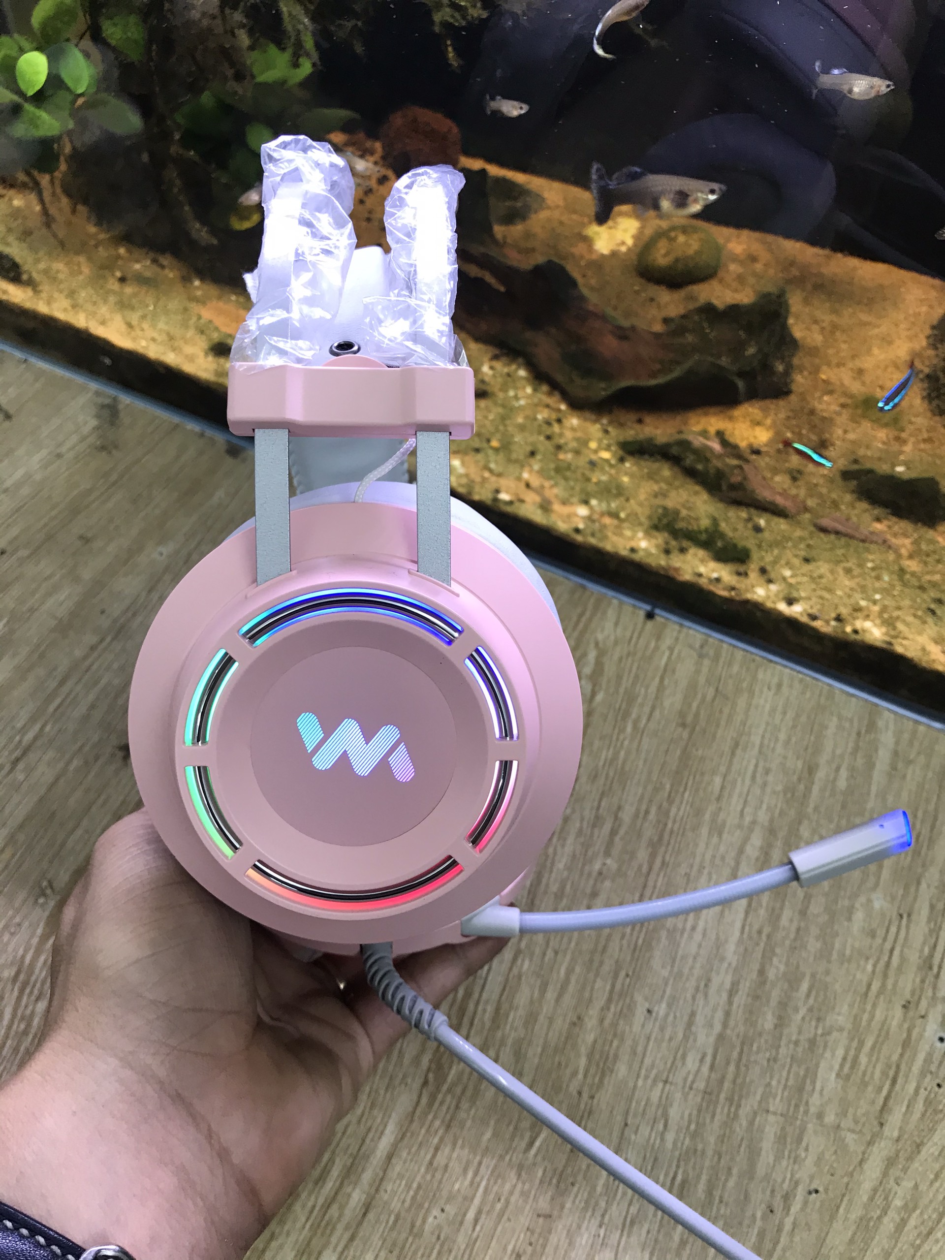 Hãng Sản Xuất: Wangming Model: 9800s Pink (Pink Version) Wangming 9800s Pink thiết kề đẹp ôm trọn đầu , giúp cố định tai và không xê dịch khi sử dụng. Dây cao su dày, chống nhiễu, giao tiếp USB (lấy nguồn led + âm thanh). Hệ thống Led nhiều màu với logo của Wangming Kiểu Dáng Phong Cách - Mang Đậm Chất Game Thủ - Rất độc và lạ. Tai nghe bọc nhựa cao cấp, tạo cảm giác êm tai khi đeo thời gian dài, ôm sát tai giúp cách âm cực tốt. Mic cứng cáp, kiểu lò xo dễ điều chỉnh , lọc âm tốt, giảm tiếng ồn tốt, giúp Voice chat trở nên hoàn hảo.