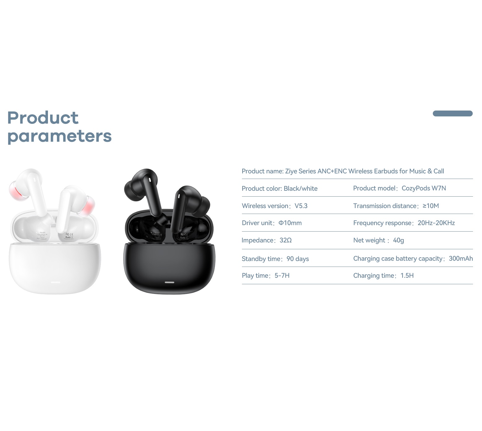 Tai nghe không dây thương hiệu Remax ● Model: CozyPods W7N ● Xuất xứ: Trung Quốc Mô tả: ● Bluetooth V5.3 kết nối nhanh, ổn định ● Công nghệ ENC 4 mic khử tiếng ồn
